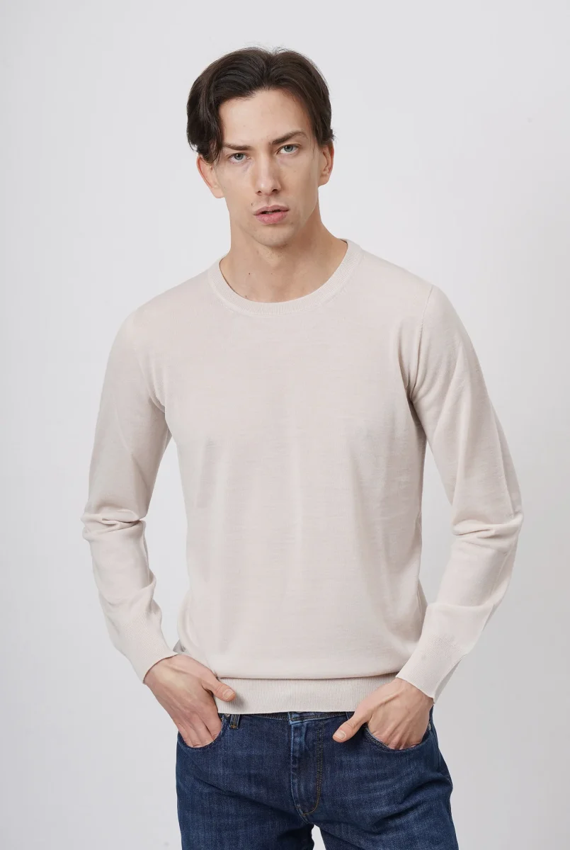 Maglia Girocollo in Lana Merino Beige