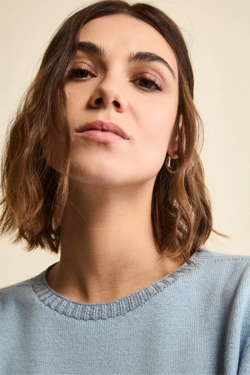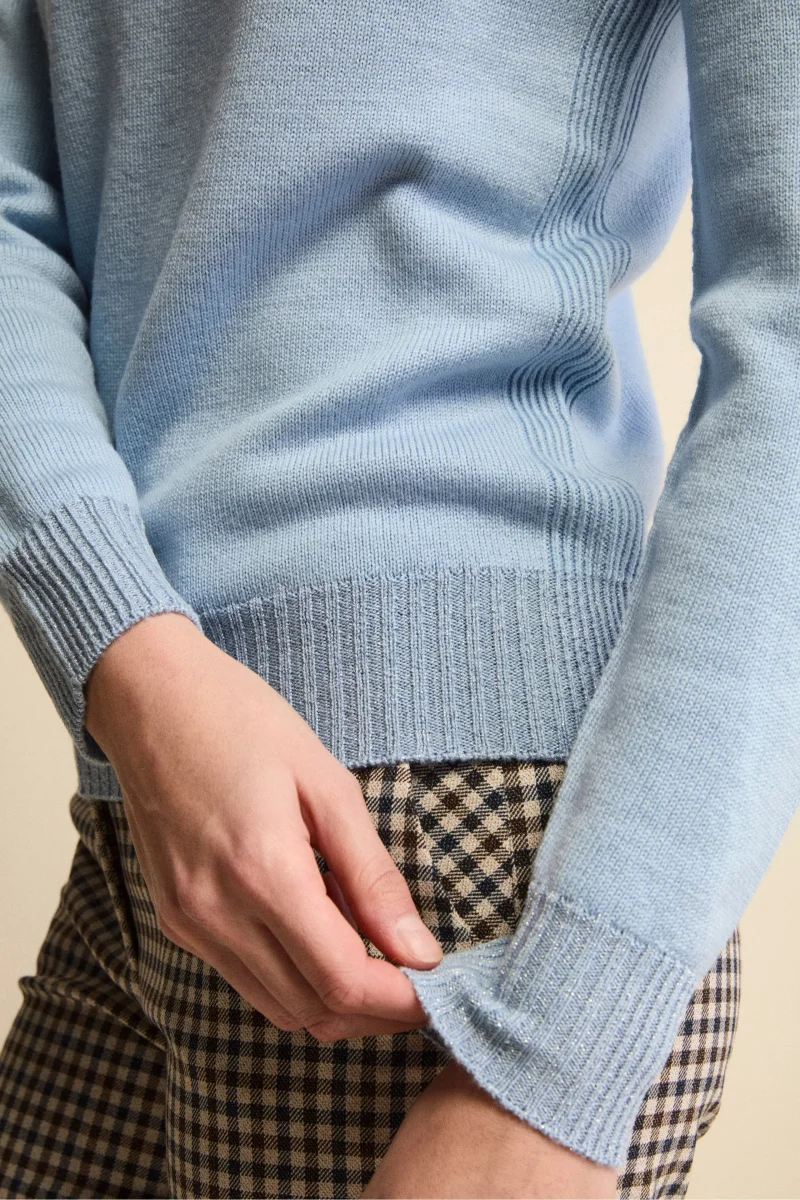 Maglia Girocollo in Lana Merino con Dettagli in Lurex – AZZURRO