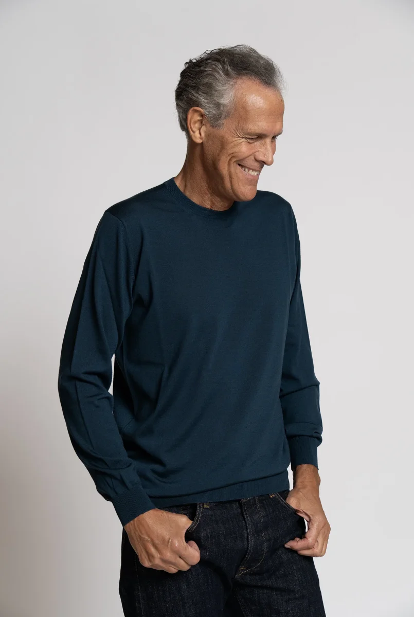 Maglia Girocollo in Lana Royal Merino Extra fine colore Ottanio