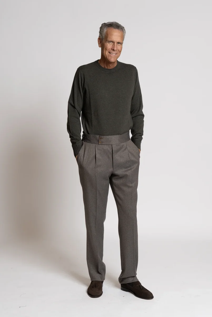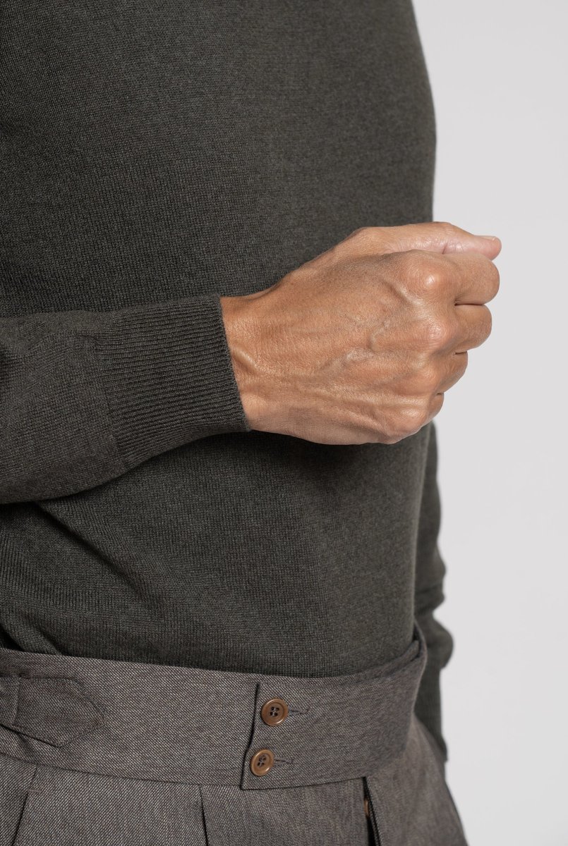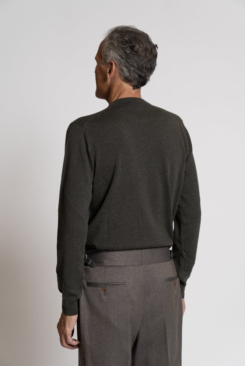 Pregiata maglia girocollo realizzata in puro cashmere, simbolo di eleganza senza tempo e comfort assoluto. Il colore marrone valorizza la naturale lucentezza e morbidezza del filato, donando al capo un aspetto raffinato e versatile, ideale sia per look casual che piรน formali.