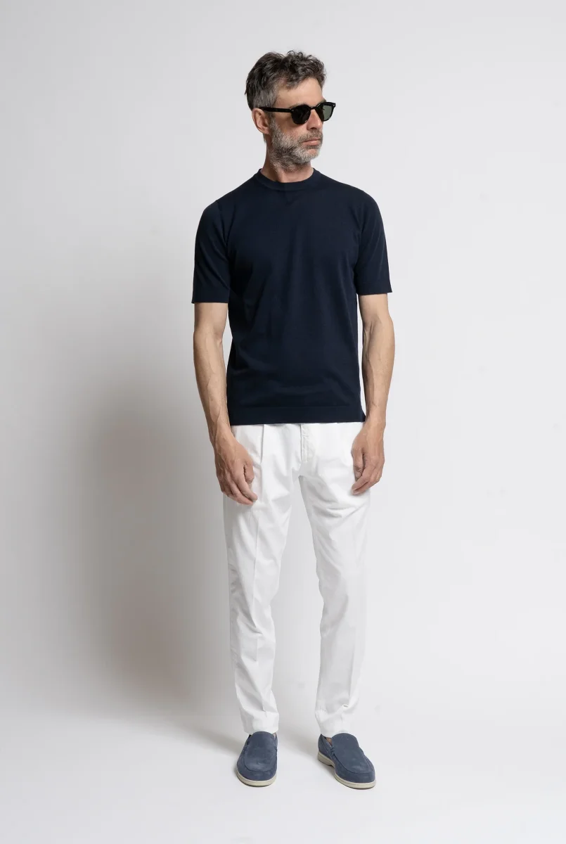 Maglia Manica Corta cotone “crépe” Girocollo Blu