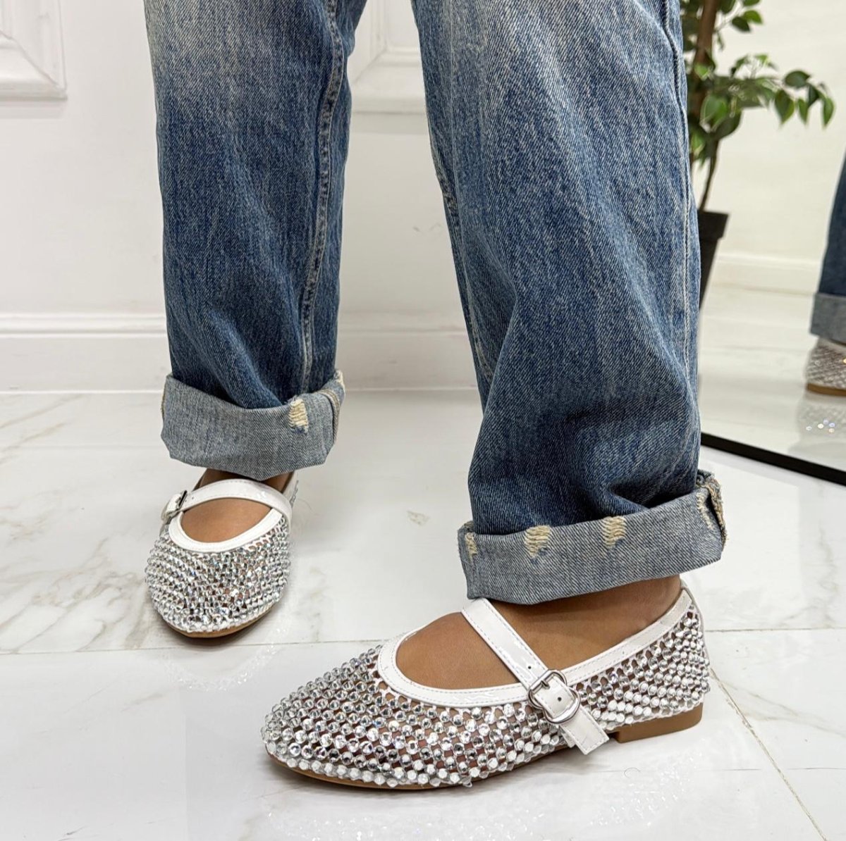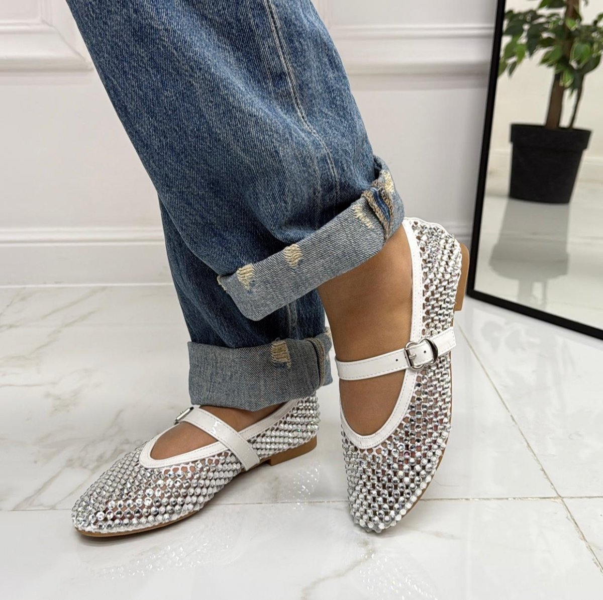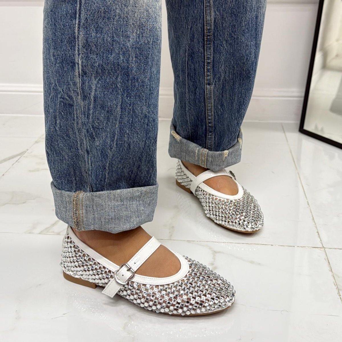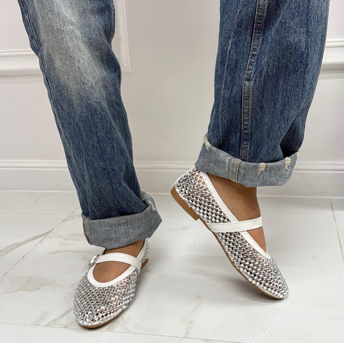 Marina – Scarpe Donna Ballerine Casual Strass Bianco