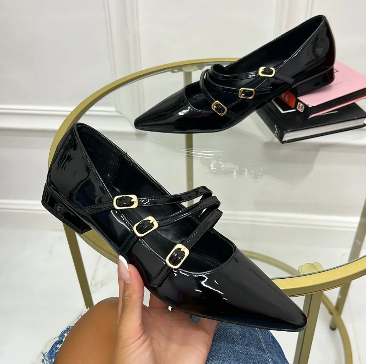 Olena – Scarpe Donna Ballerine Cinturini Comode Vernice Nero
