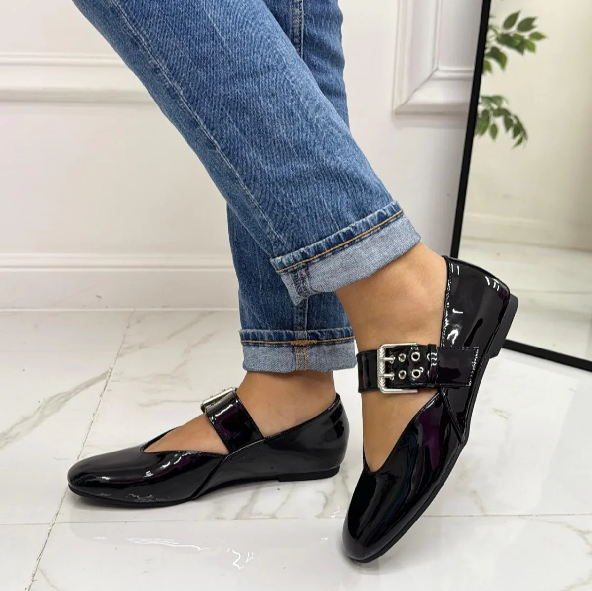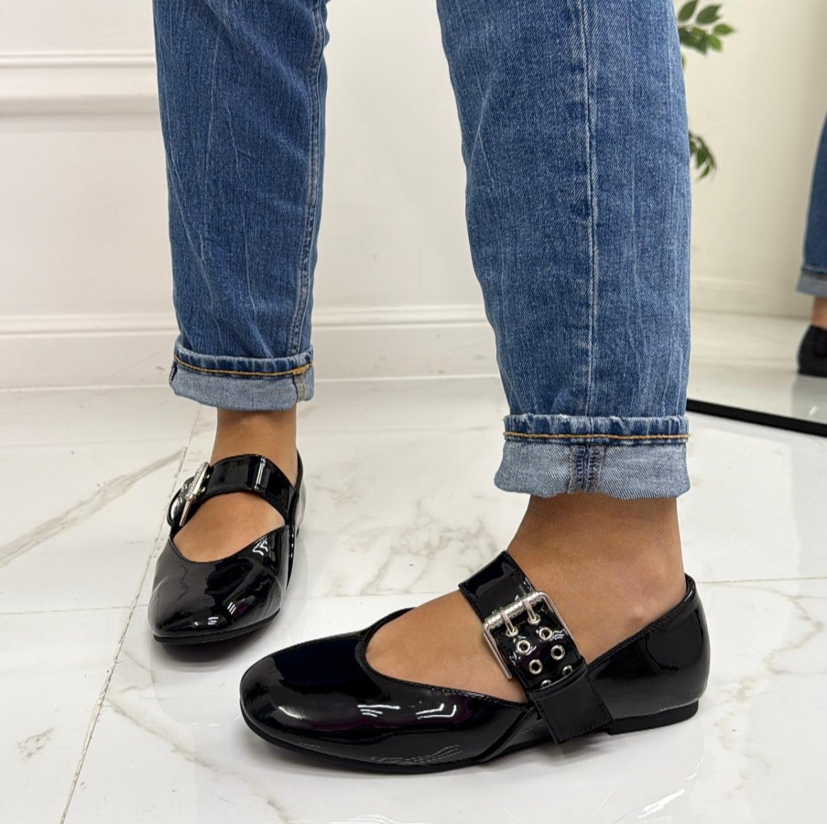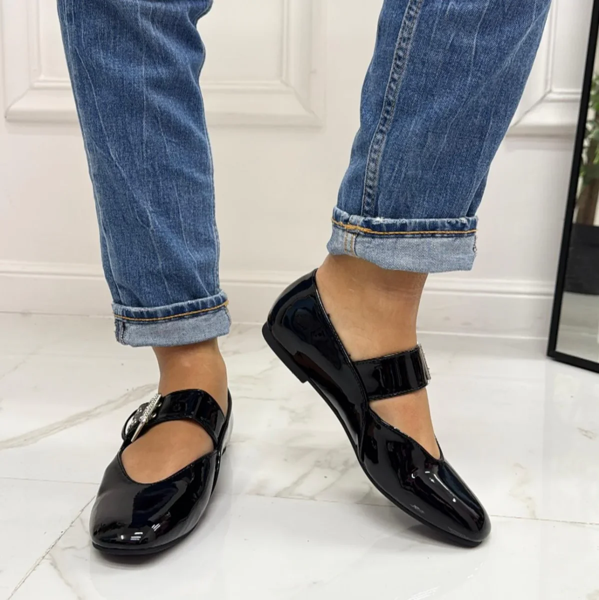 Pamela – Scarpe Donna Ballerine Cinturino Comode Lucido Nero