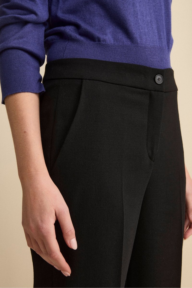 Pantalone a Gamba Larga con Risvolto in Misto Lana – NERO