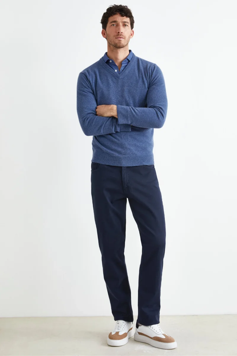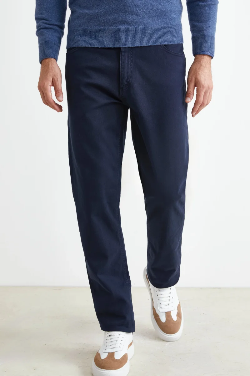 Pantalone Cinque Tasche Regular Fit, perfetto per chi cerca un look casual e confortevole senza rinunciare allo stile. Realizzati in morbido cotone, questi pantaloni da uomo offrono una vestibilitร regolare che assicura comoditร in ogni momento della giornata. La chiusura frontale con un bottone e i passanti per cintura ne migliorano la praticitร , mentre il design a cinque tasche aggiunge un tocco sportivo e funzionale al look. Ideali per outfit versatili, si adattano facilmente ad ogni occasione. Abbinali ad Pullover o Dolcevita da uomo per uno stile casual o con una camicia e giacca per un outfit piรน elegante. Questi pantaloni fanno parte della raffinata collezione IL Lanificio, che coniuga design contemporaneo e attenzione ai dettagli. Made in Italy, il modello รจ alto 189 cm e indossa la taglia 50.