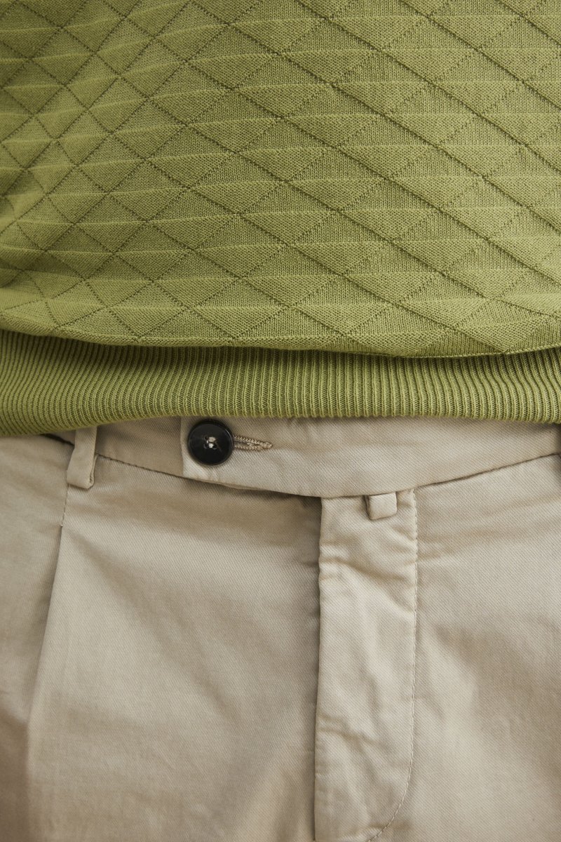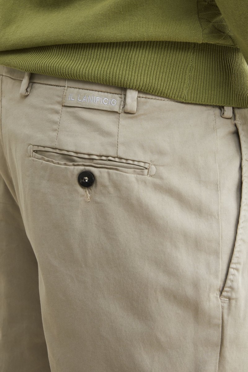 Pantalone classico in cotone da uomo con pinces, tasche america e chiusura a laccio frontale. Il loro taglio classico e la vestibilitร impeccabile li rendono perfetti per qualsiasi occasione, dallโufficio alle occasioni piรน formali. Completa il look con una camicia e un pullover in cotone Il Lanificio. Vestibilitร slim. Made in Italy. Il modello รจ alto 1.86 cm e indossa la taglia 48.
