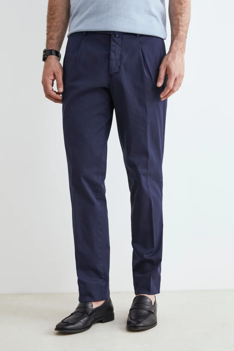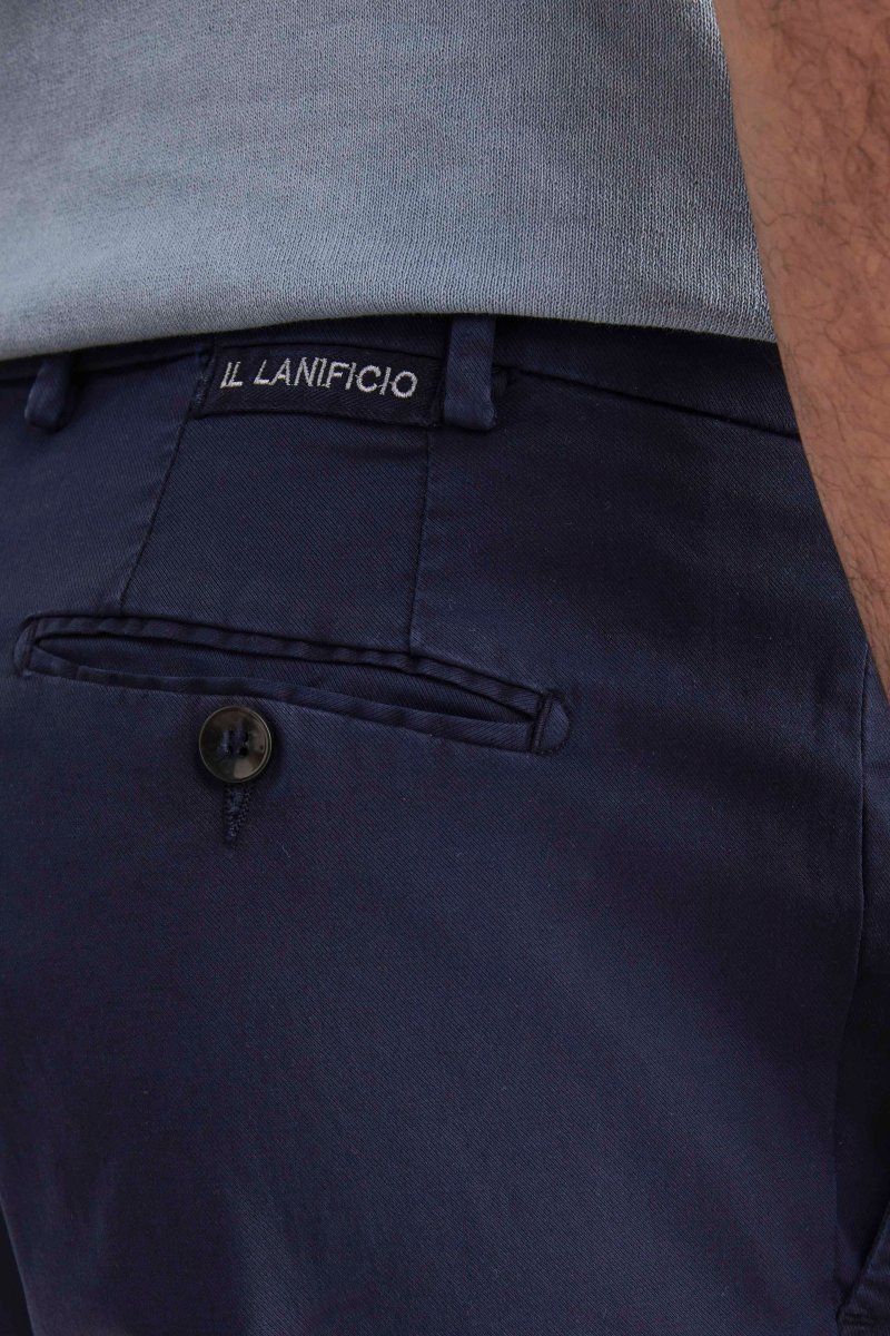 Pantalone classico in cotone da uomo con pinces, tasche america e chiusura a laccio frontale. Il loro taglio classico e la vestibilitร impeccabile li rendono perfetti per qualsiasi occasione, dallโufficio alle occasioni piรน formali. Completa il look con una camicia e un pullover in cotone Il Lanificio. Vestibilitร slim. Made in Italy. Il modello รจ alto 1.86 cm e indossa la taglia 48.
