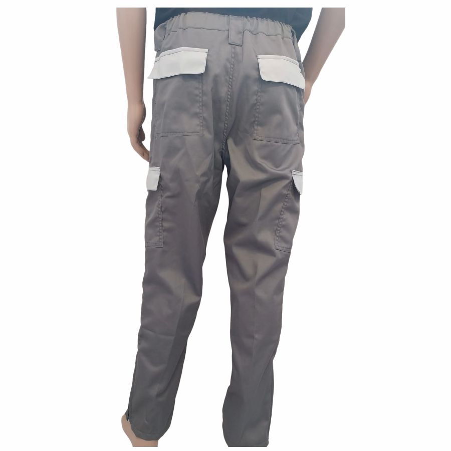 Pantalone mod. GRAND PRIX multitasche in policotone 65/35 gr. 200 grigio medio/grigio chiaro, con rinforzoย ginocchia. Imbustato singolarmente