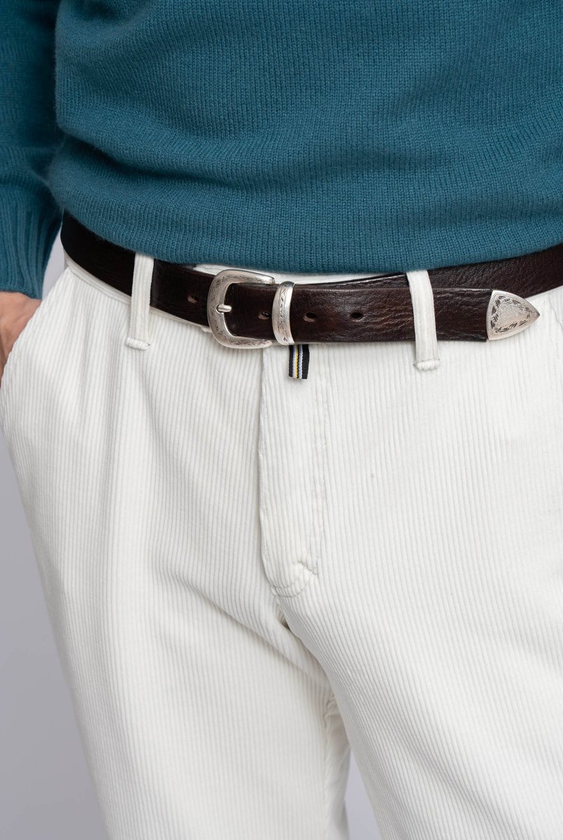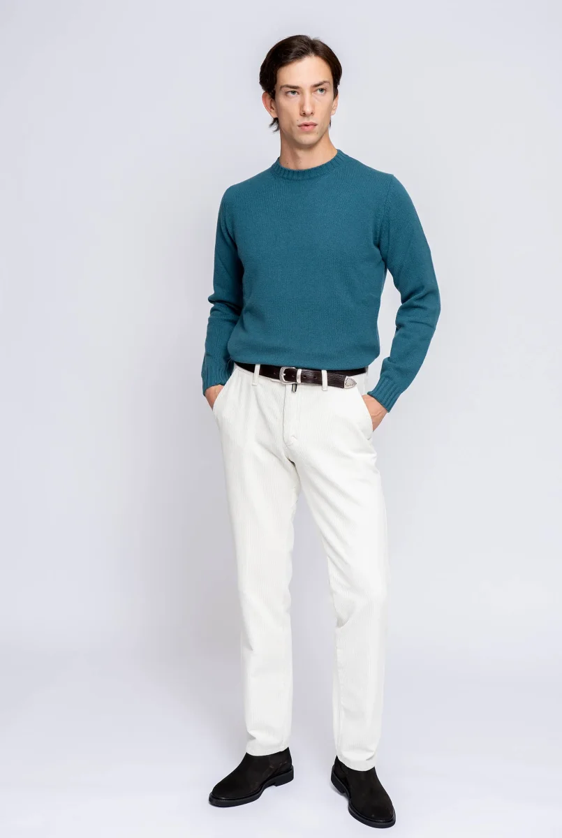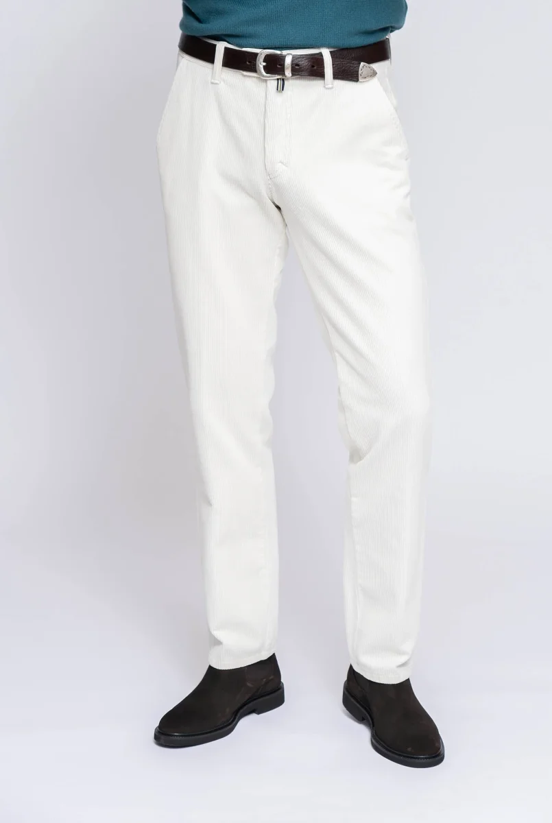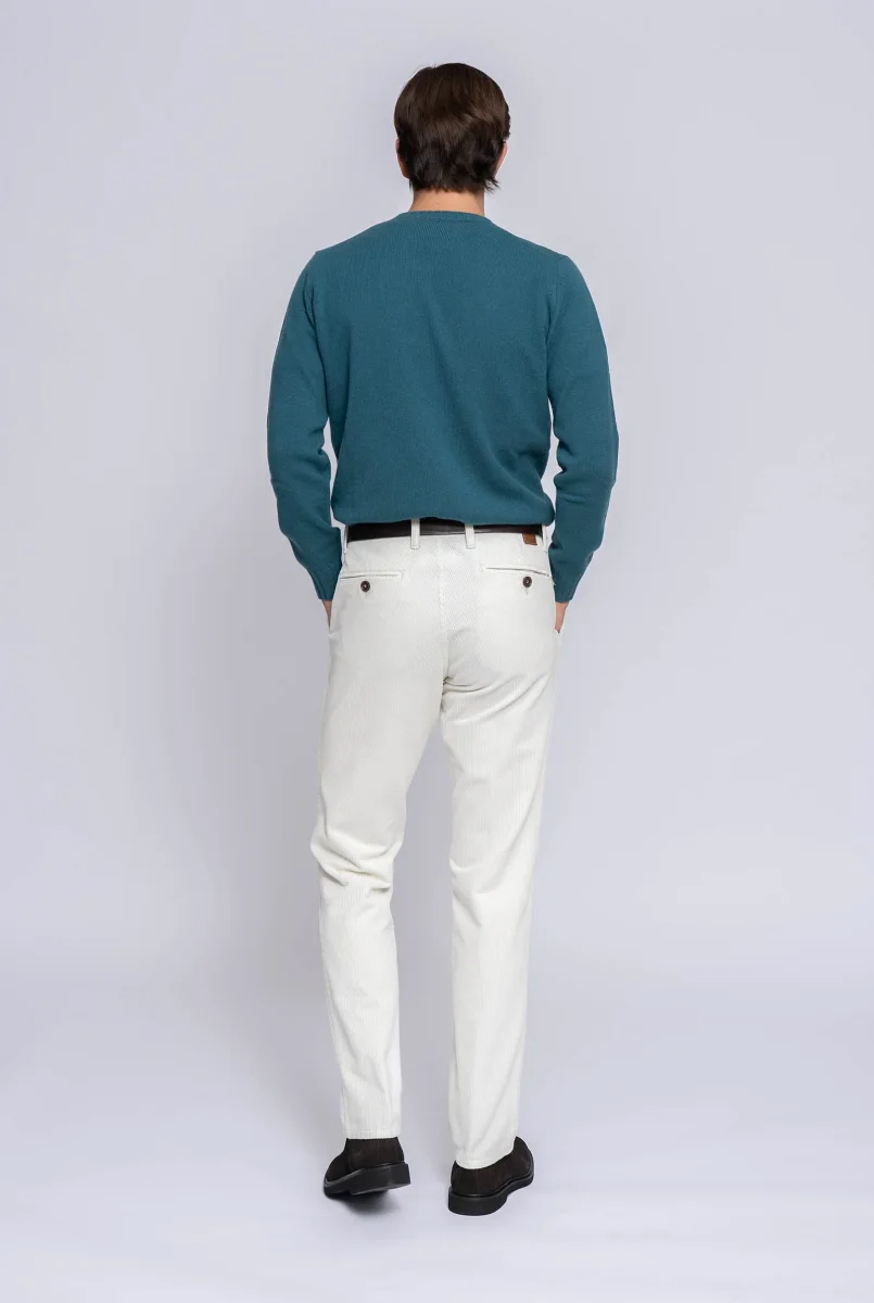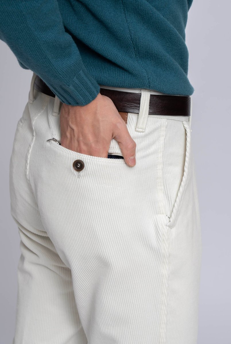 Pantalone in velluto a coste con 500 righe, colore panna.