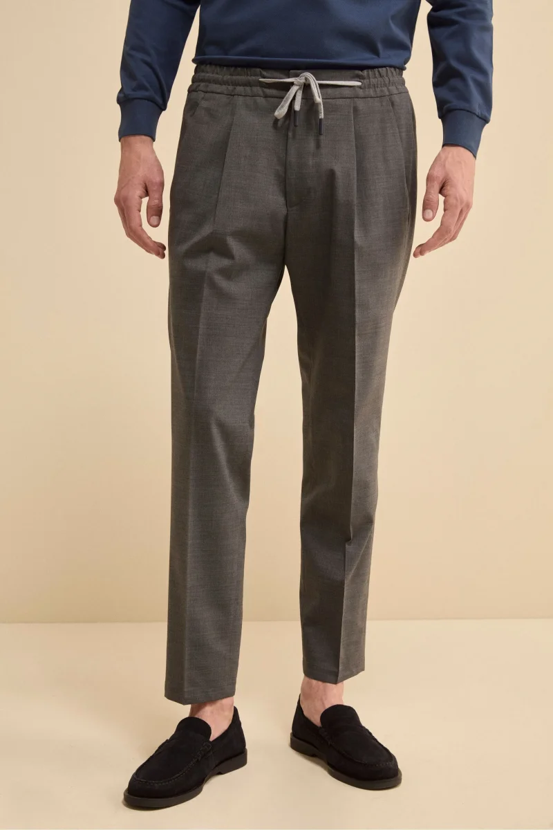 Pantalone Slim Fit con Coulisse in Misto Lana – GRIGIO MEDIO MELANGE