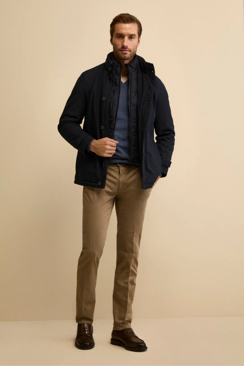 Pantalone Slim Fit con Pieghe realizzato in gabardina stretch, รจ un pantalone da uomo slim fit ideale per la stagione autunno inverno grazie alla sua texture compatta e confortevole. Presenta pieghe frontali, passanti per cintura, tasche America e chiusura con bottone e cinturino che garantiscono un fitting preciso e raffinato, mentre le tasche posteriori a […]