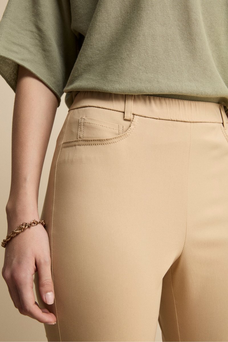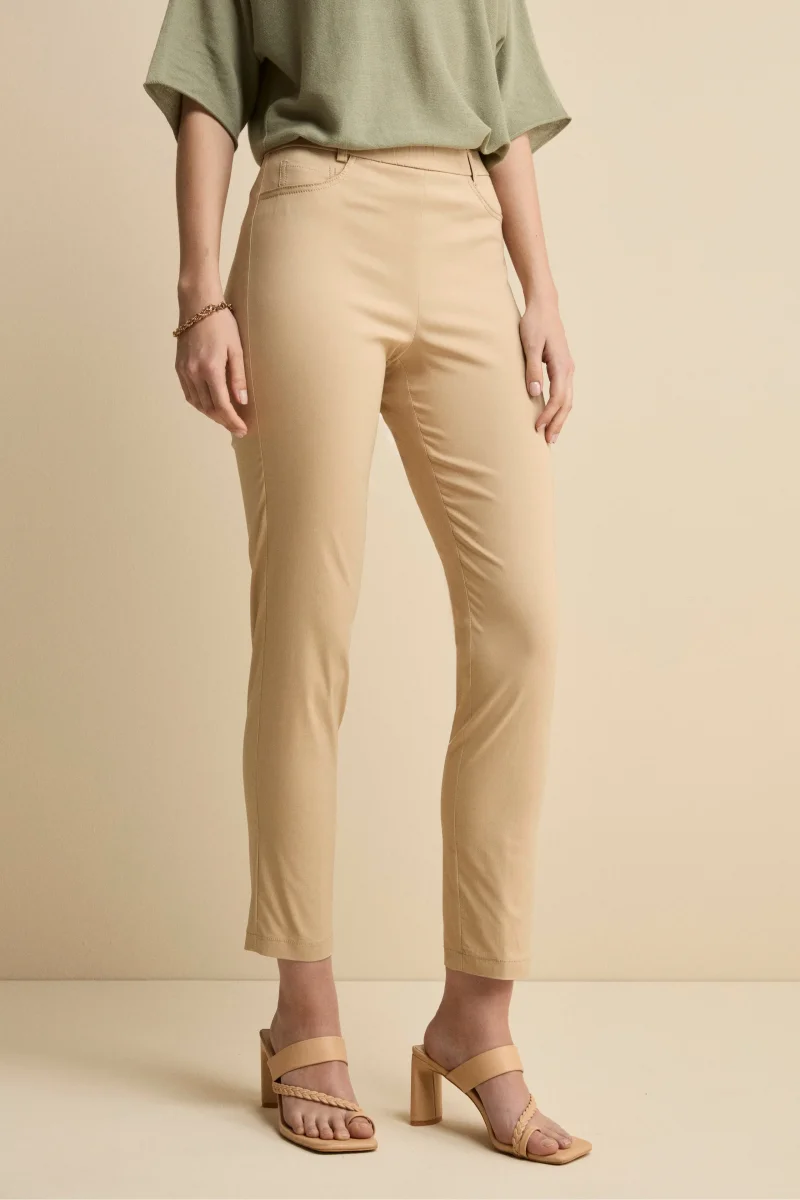 Pantalone Slim Fit da donna, realizzato in Bengalina unita elasticizzata, รจ un capo essenziale per chi cerca comfort e stile in un unico look. Caratterizzato da linea asciutta, finte tasche frontali, elastico in vita e passanti per cintura, questo pantalone cropped assicura una vestibilitร comoda e impeccabile. Perfetto da abbinare con camicie o giacche per creare outfit versatili sia in ufficio che nel tempo libero. Parte della collezione IL Lanificio e Made in Italy, รจ un must-have di ogni guardaroba femminile. La modella รจ alta 177 cm e indossa la taglia 40.