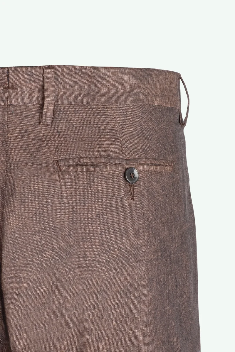 Pantalone Slim Fit in Lino con Pieghe – MARRONE