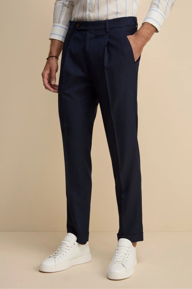 Scopri il Pantalone Slim Fit in Misto Lana, un capo elegante e sofisticato, perfetto per lโuomo moderno. Realizzati in misto lana, questi pantaloni da uomo sono caratterizzati da una vestibilitร slim fit, che offre una linea snodata e contemporanea. Le pinces frontali aggiungono un tocco di classe, mentre il risvolto alla caviglia conferisce un look impeccabile e ricercato. Dotato di tasche america e tasche posteriori doppio filetto con bottone su una tasca, questo pantalone รจ funzionale senza sacrificare lo stile. La chiusura frontale con bottone e cinturino, unita ai cinturini e bottoni sui fianchi in vita, permette di regolare perfettamente il fit, adattandolo alle tue esigenze. Realizzato Made in Italy, il Pantalone Slim Fit in Misto Lana รจ unโottima scelta per creare un look professionale e raffinato, da abbinare facilmente a camicie, giacche o maglioni. Completa il tutto con mocassini o scarpe eleganti per un risultato sempre elegante e senza tempo. Parte della collezione esclusiva IL Lanificio, questo capo รจ pensato per chi cerca qualitร e design distintivo. Il modello รจ alto 189 cm e indossa la taglia 50.