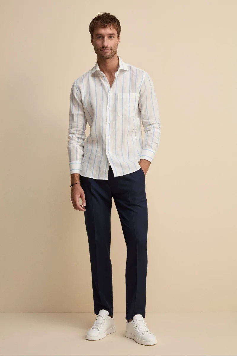 Bermuda a Righe in Lino con Pinces – AZZURRO RIGATO