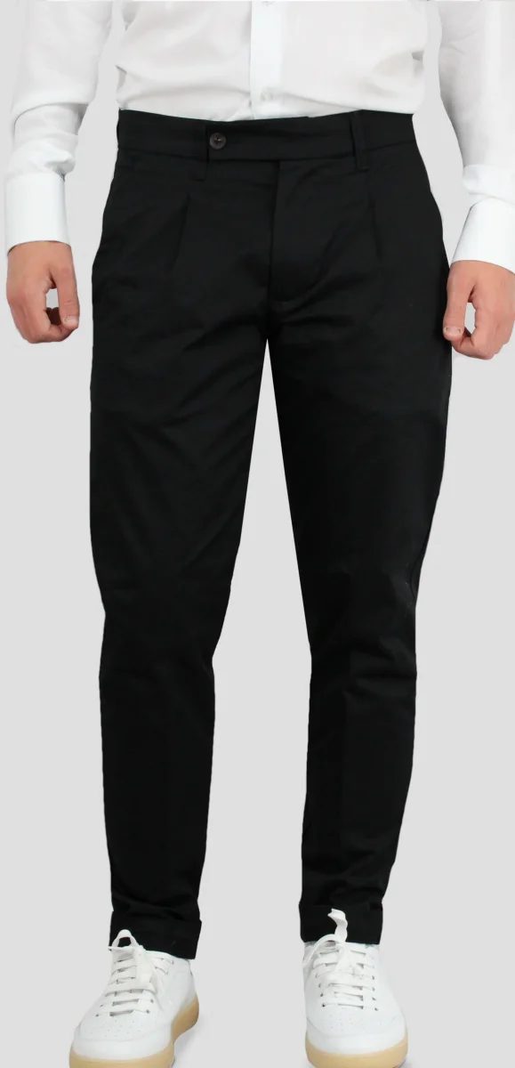 Pantalone Sorrento รจ un capo elegante in rasatello di cotone, con due pences frontali e fondo a sigaretta. Perfetto per un look pulito e professionale. Il tessuto di alta qualitร garantisce un comfort duraturo. Aggiungi un tocco di classe al tuo guardaroba con Pantalone Sorrento.