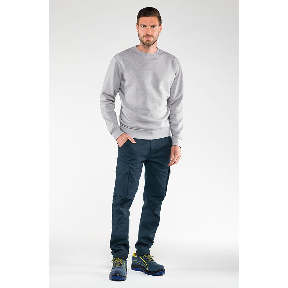 Chiusura centrale con bottone e cerniera Elastico sui fianchi Passanti in vita per cintura 2 tasche principali 2 tasche a soffietto sulle gambe con pattina e bottoni 2 tasche posteriori con pattina e bottoni Triple cuciture Tessuto 98% COTONE 2% ELASTAN | 300 g/m2