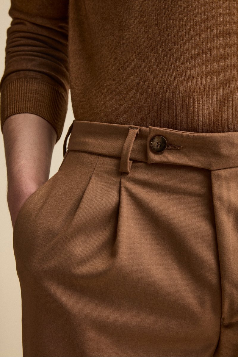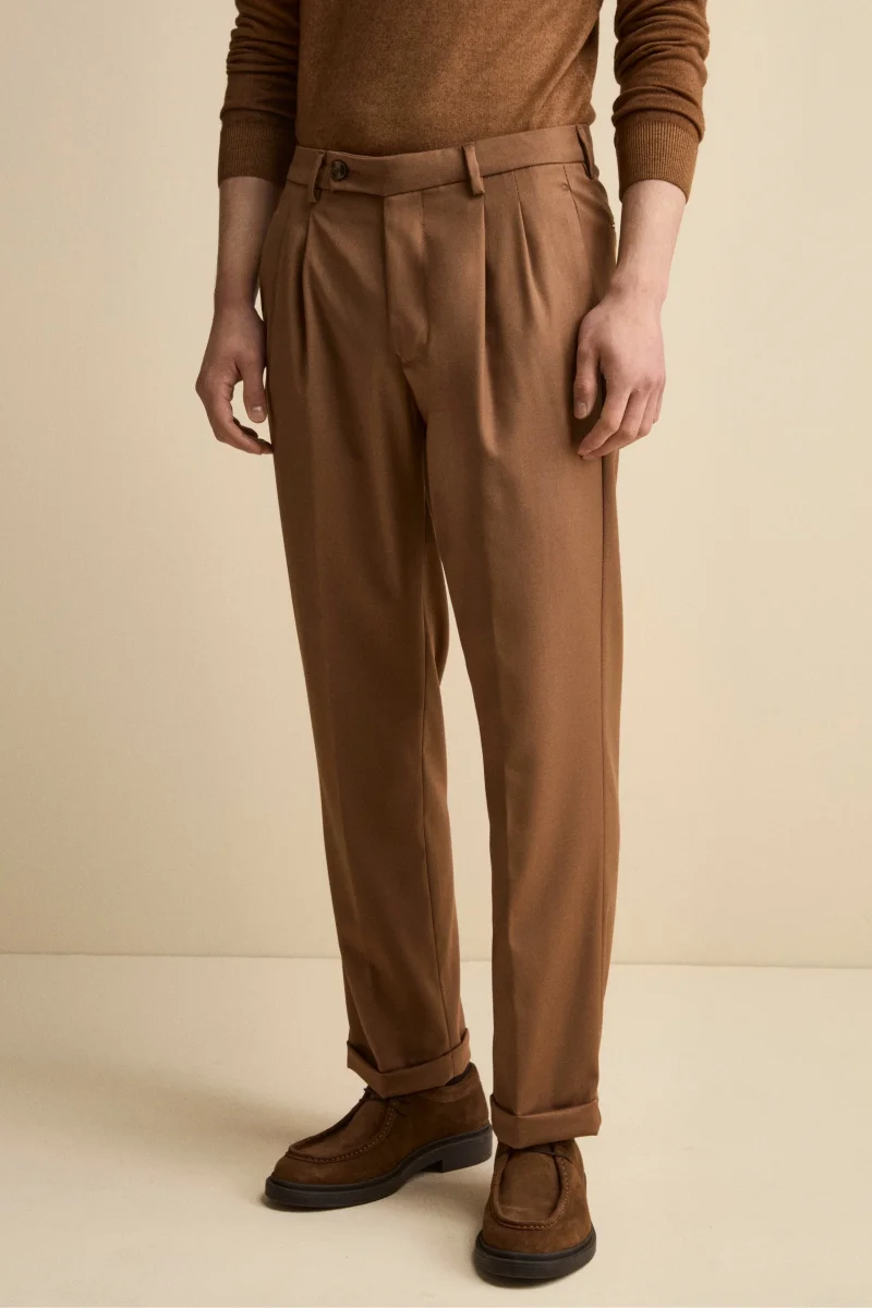 Pantalone Straight in Misto Lana con Pinces e Risvolto – CAPPUCCINO
