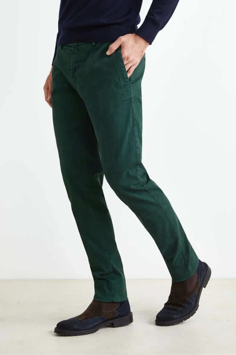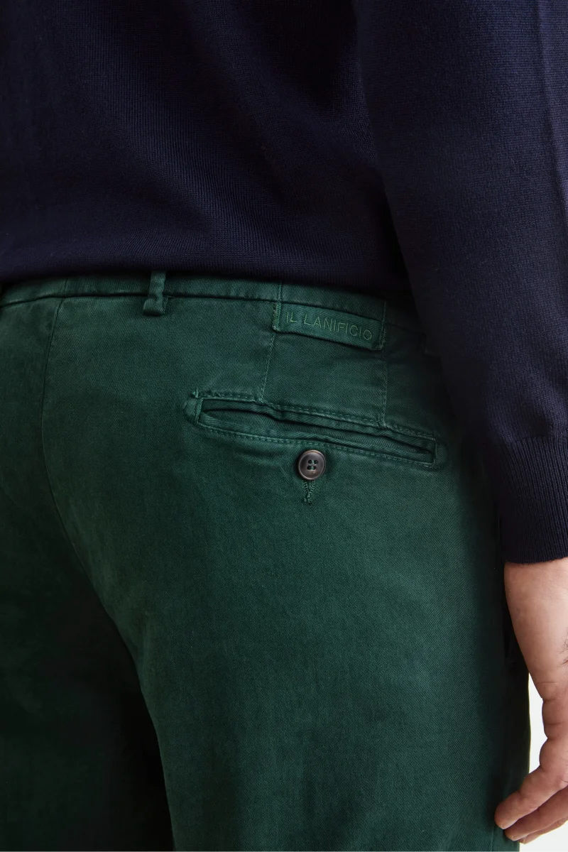 Il pantalone stretch in gabardina da uomo รจ la scelta perfetta per chi cerca comfort e stile in un unico capo. Realizzato in cotone di alta qualitร , questo pantalone si distingue per la sua vestibilitร slim fit che esalta la silhouette maschile. Dotato di tasche america, passanti per cintura e una pratica chiusura con cinturino e bottone frontale, combina eleganza e funzionalitร . Le tasche posteriori con bottone aggiungono un tocco di classe in piรน. Il tessuto stretch in gabardina garantisce libertร di movimento e un fit impeccabile per tutto il giorno. Parte della prestigiosa collezione IL Lanificio, questo pantalone made in Italy รจ perfetto sia per look casual con una camicia e sneakers, sia per occasioni formali abbinato a un blazer e mocassini. Il modello รจ alto 189 cm e indossa la taglia 50.
