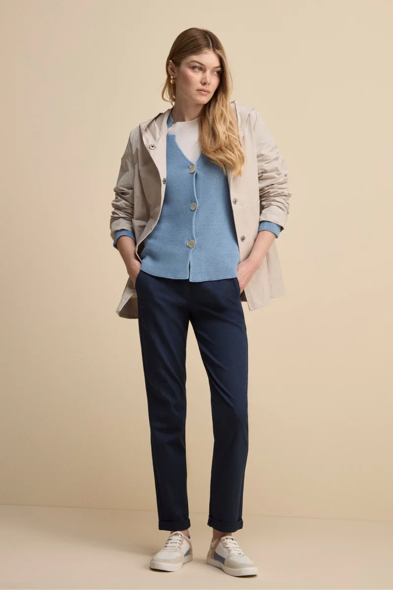 Scopri la versatilitร raffinata del Pantalone Twill Regular Fit, realizzato con cura in pregiato misto cotone Twill. Dotato di una pratica chiusura frontale con bottone e passanti per cintura, questo pantalone da donna presenta tasche america sul davanti e tasche posteriori a doppio filetto per un design elegante e funzionale. Parte della prestigiosa collezione IL Lanificio, il pantalone Twill incarna lo stile italiano per eccellenza: qualitร superiore, attenzione ai dettagli e una produzione a filiera corta. Ideale per ogni occasione, puoi abbinarlo a camicie sartoriali per un look professionale impeccabile oppure con maglie casual per un outfit rilassato e chic. Completa con sneakers o mocassini per un risultato sempre elegante e contemporaneo. Made in Italy. La modella รจ alta 170 cm e indossa la taglia 40.