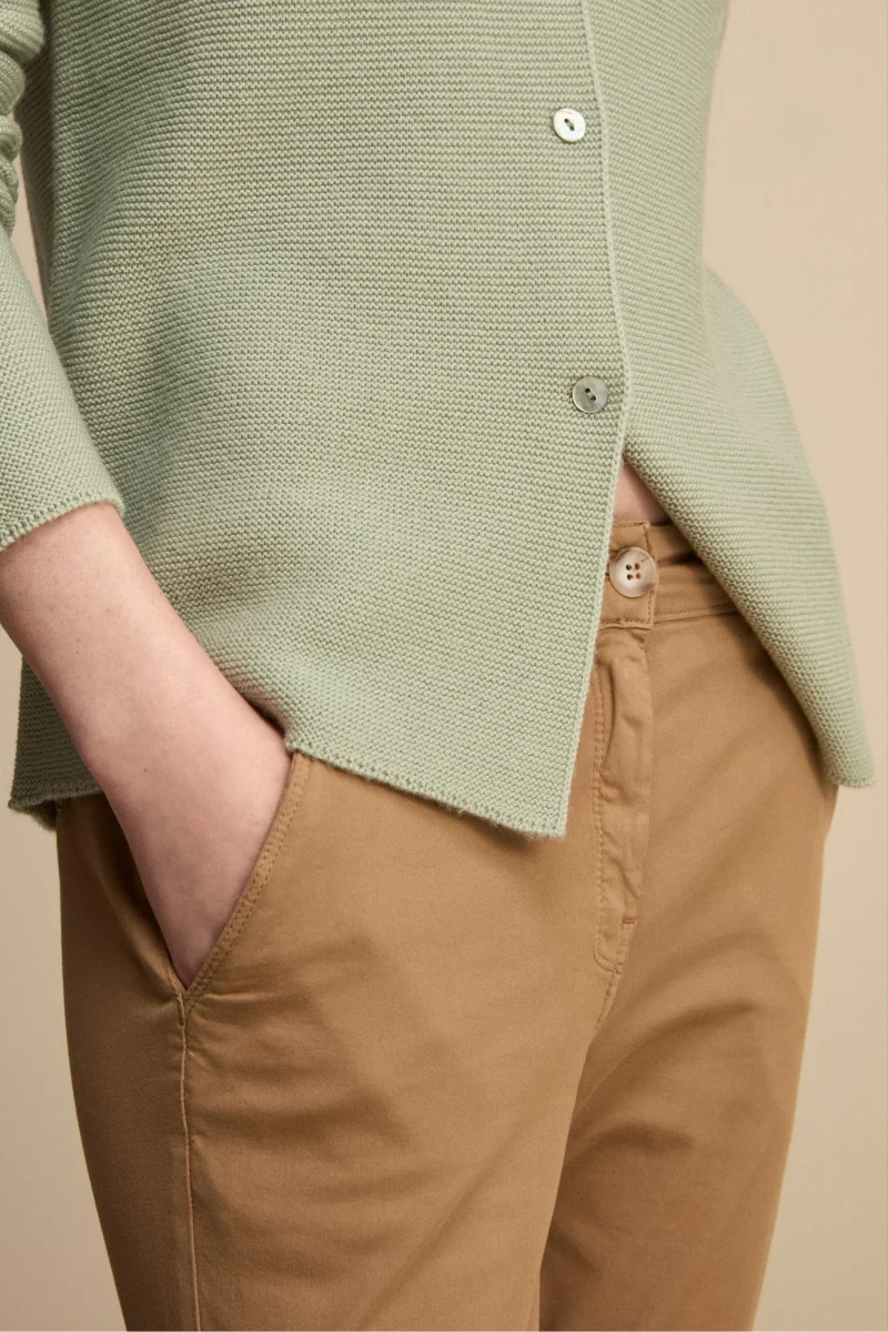 Scopri la versatilitร raffinata del Pantalone Twill Regular Fit, realizzato con cura in pregiato misto cotone Twill. Dotato di una pratica chiusura frontale con bottone e passanti per cintura, questo pantalone da donna presenta tasche america sul davanti e tasche posteriori a doppio filetto per un design elegante e funzionale. Parte della prestigiosa collezione IL Lanificio, il pantalone Twill incarna lo stile italiano per eccellenza: qualitร superiore, attenzione ai dettagli e una produzione a filiera corta. Ideale per ogni occasione, puoi abbinarlo a camicie sartoriali per un look professionale impeccabile oppure con maglie casual per un outfit rilassato e chic. Completa con sneakers o mocassini per un risultato sempre elegante e contemporaneo. Made in Italy. La modella รจ alta 170 cm e indossa la taglia 40.