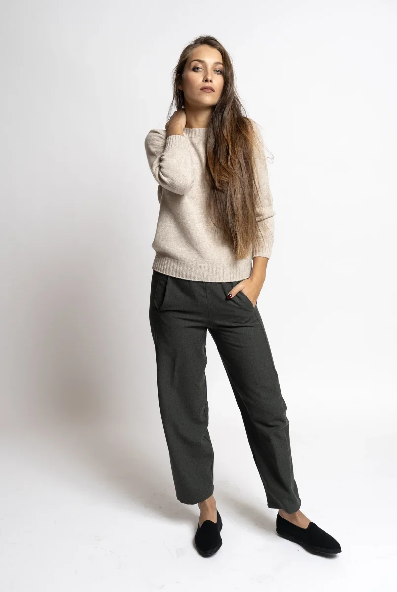Il pantalone verdone melange Made in Italy unisce stile, comfort e qualitร artigianale.