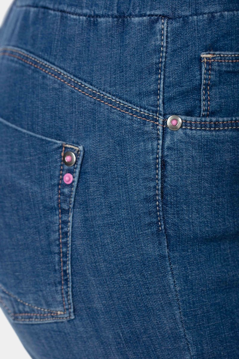 Pantaloni capri da donna in morbido cotone denim realizzati con una pratica fascia elastica in vita e cinque tasche. Modello slim fit con gamba leggermente svasata sul fondo. Per un look casual, abbina i pantaloni capri a una camicia di cotone, sneakers o zeppe, oppure, se preferisci optare per un look sofisticato da giorno, indossa questi denim con un twin-set colorato o con un cardigan corto e tacchi. Made in Italy. La modella indossa la taglia 40.