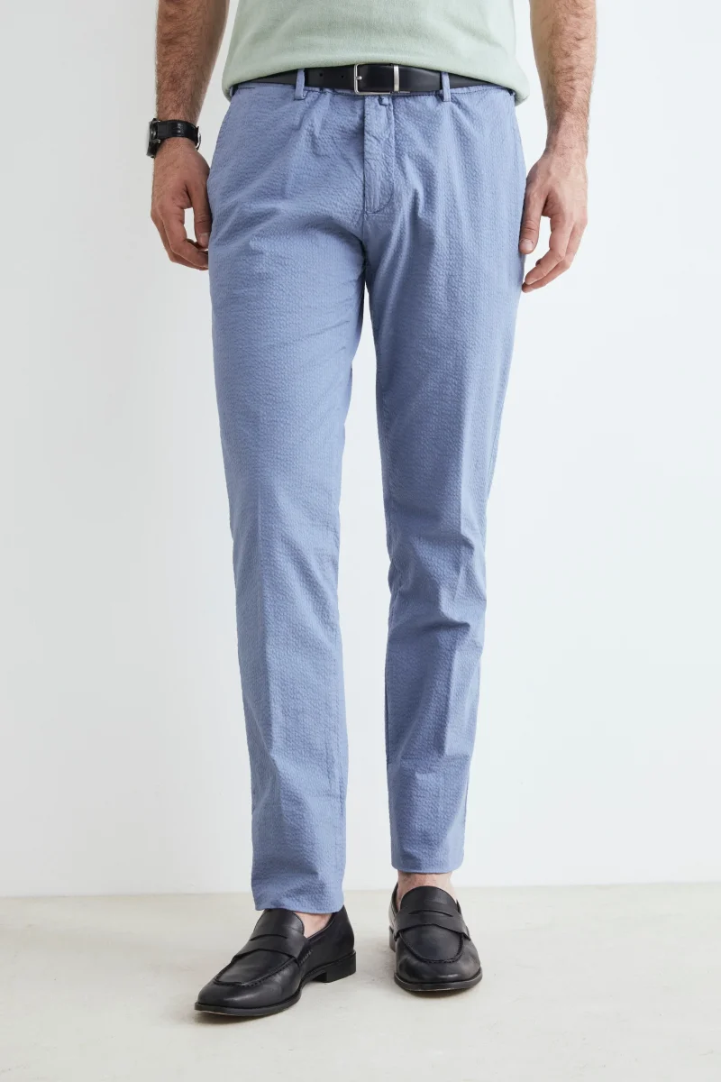 Pantaloni da uomo slim in cotone. Realizzati con tessuti di alta qualitร e una vestibilitร aderente ma confortevole, questi pantaloni sono lโelemento essenziale per un guardaroba versatile. La loro silhouette slim offre un look elegante e raffinato che si adatta perfettamente a ogni occasione. Indossali con una camicia per un look da ufficio, oppure con una maglietta e sneakers per unโuscita informale. Made in Italy.