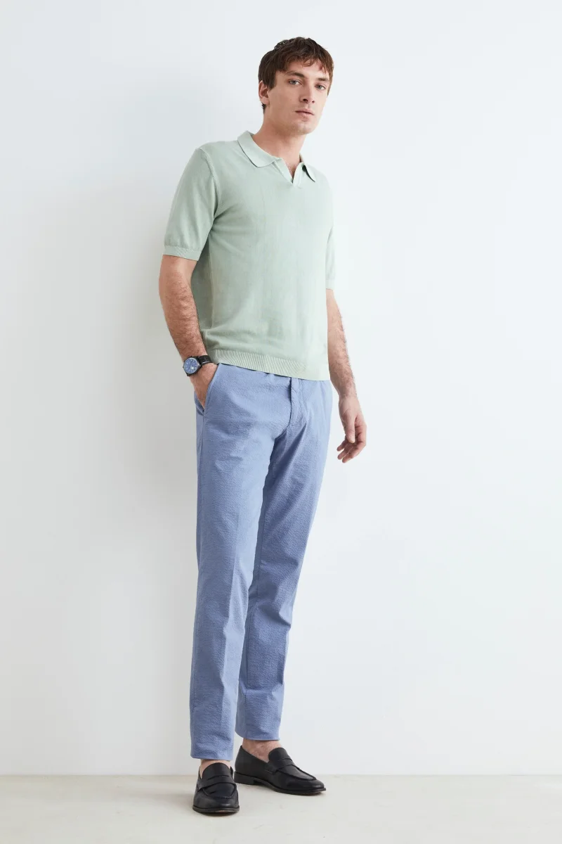 Pantaloni da uomo slim in cotone. Realizzati con tessuti di alta qualitร e una vestibilitร aderente ma confortevole, questi pantaloni sono lโelemento essenziale per un guardaroba versatile. La loro silhouette slim offre un look elegante e raffinato che si adatta perfettamente a ogni occasione. Indossali con una camicia per un look da ufficio, oppure con […]