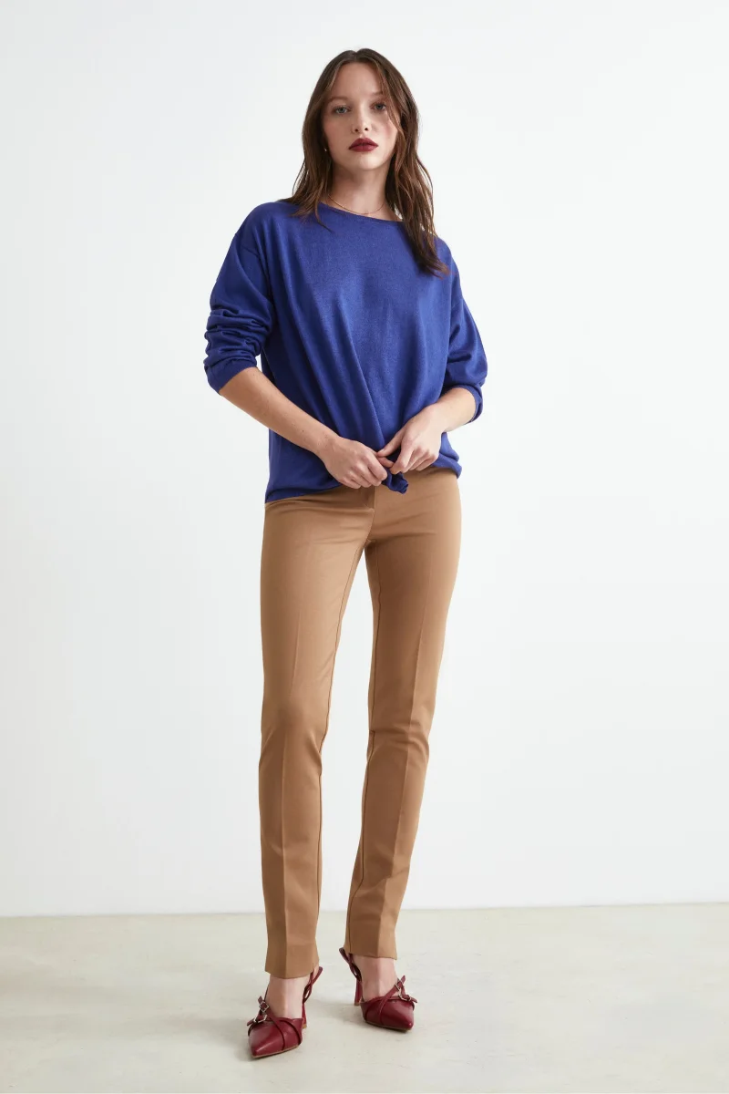 Pantaloni slim in jersey – CAMMELLO