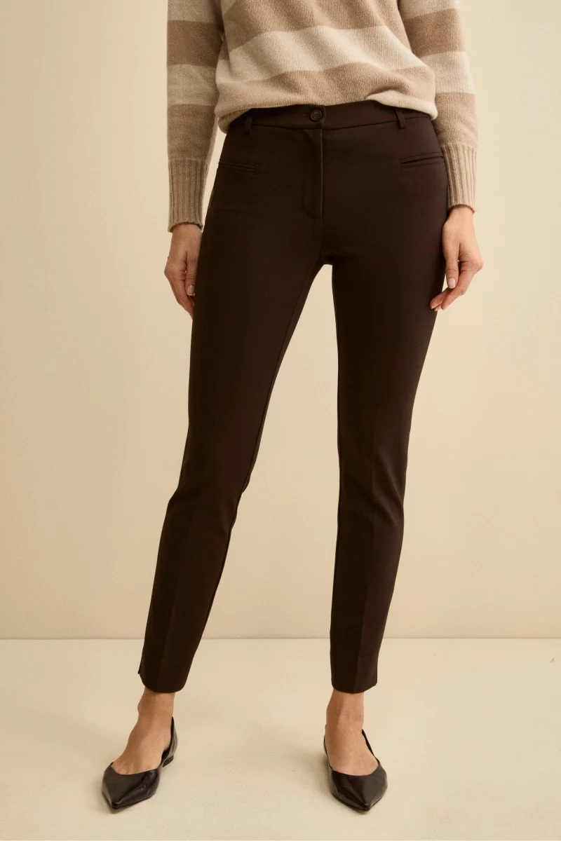 Pantaloni slim in jersey – MARRONE