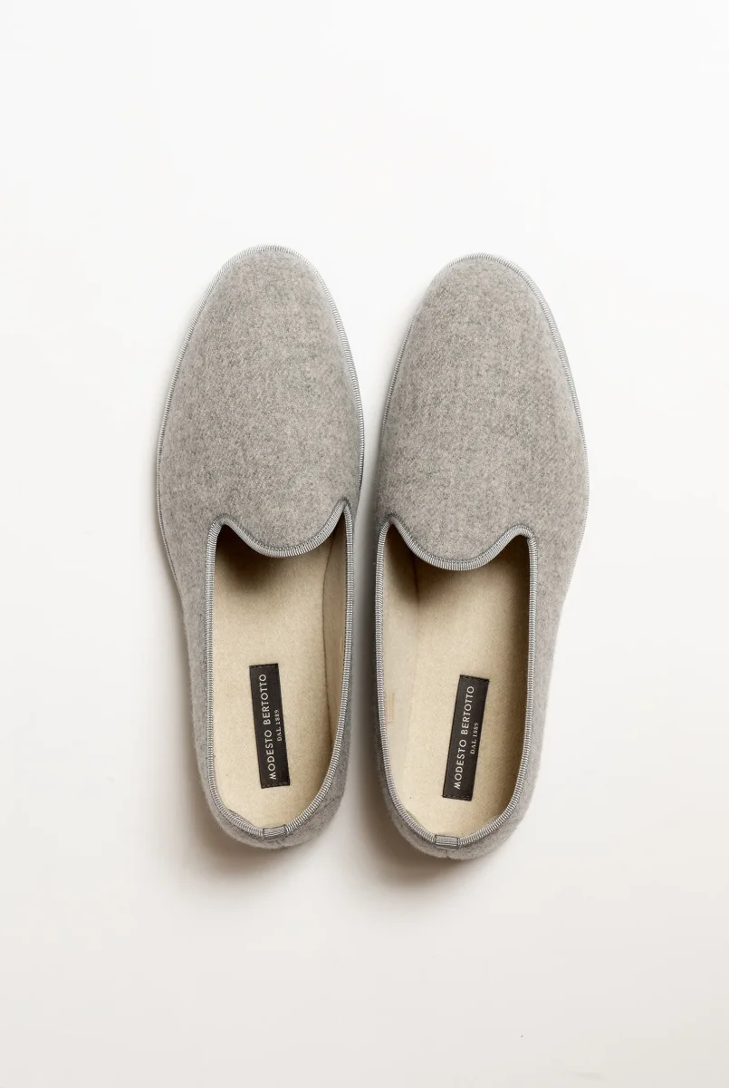 La pantofola in lana e cashmere di Modesto Bertotto รจ un autentico gioiello dell’artigianato italiano, realizzata interamente a mano con tessuti di altissima qualitร . La morbida fodera interna in cashmere avvolge il piede con un comfort impareggiabile, rendendola ideale per il relax domestico. La lana esterna, elegante e calda, aggiunge un tocco di raffinatezza. La […]