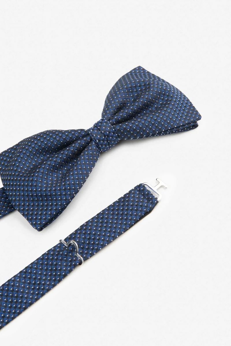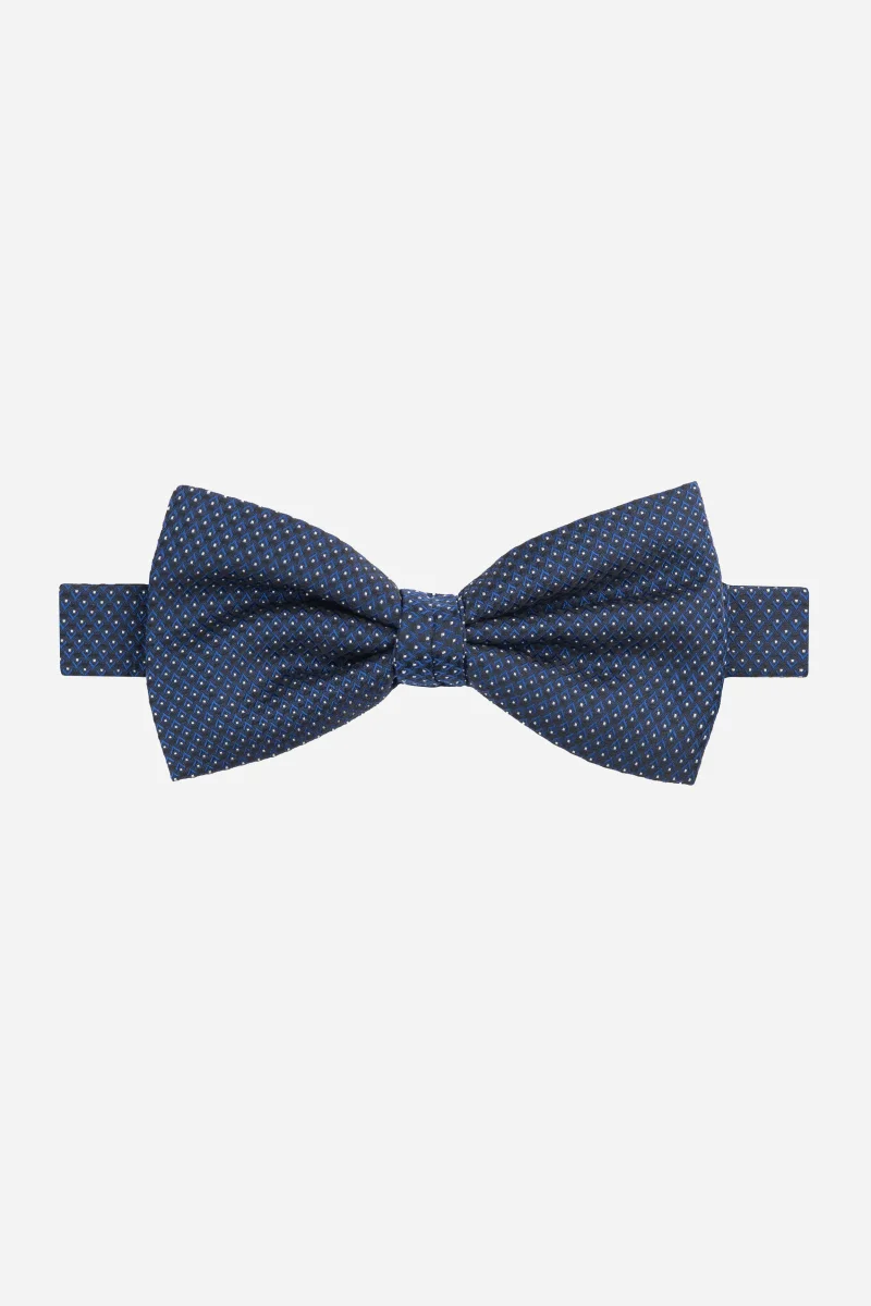 Papillon jacquard fantasia a pois. Indossalo eventualmente in coordinato con gilet e pochette abbinati per un look da cerimonia in completo ad un abito grigio antracite o ad un abito blu navy. Made in Italy