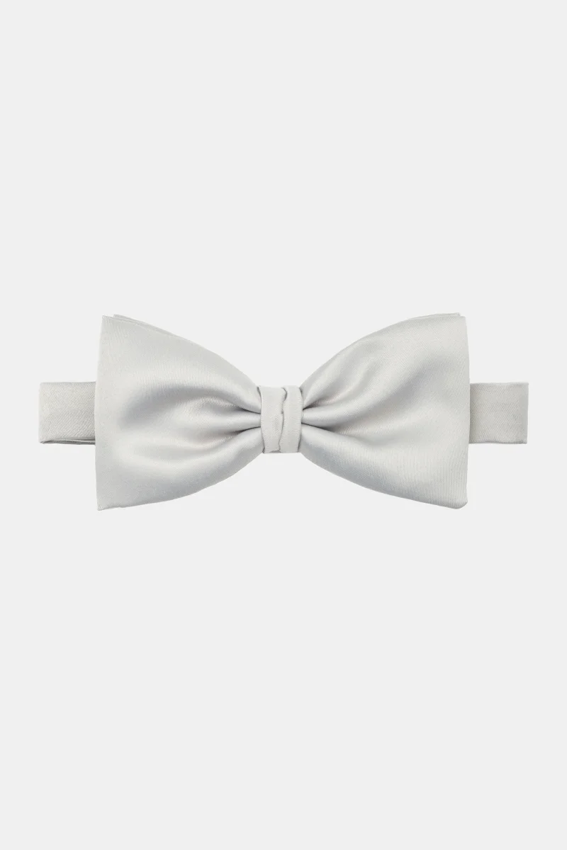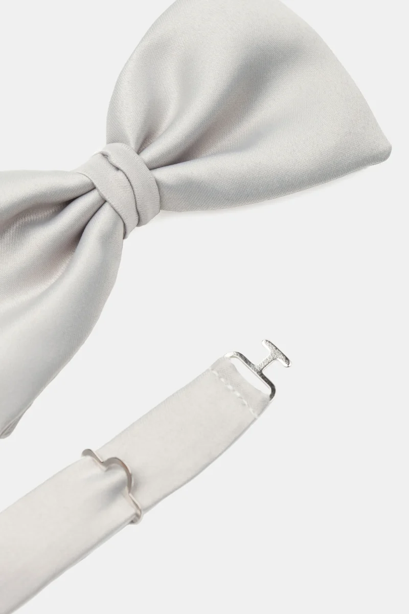 Elegante papillon in raso nero o perla, per completare il tuo outfit black-tie. Il papillon annodato è di facile chiusura grazie al gancetto in metallo e alla chiusura con cinturino regolabile.