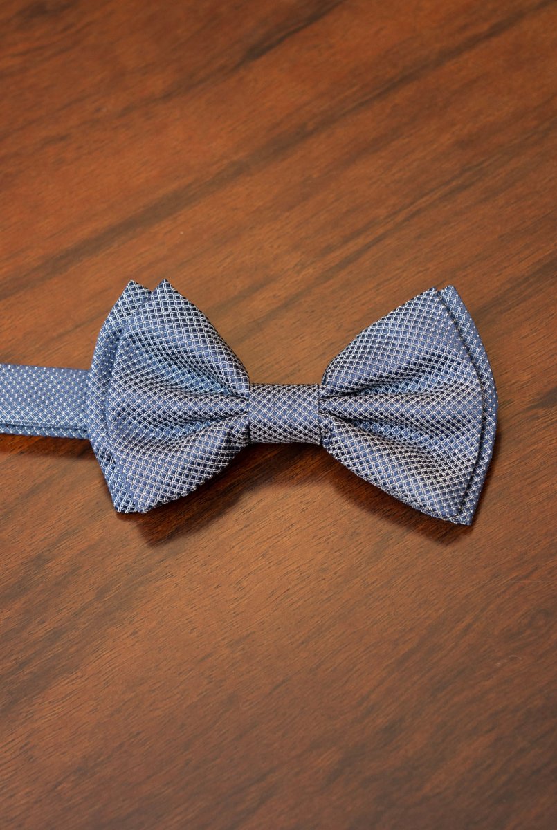 Papillon taglia unica regolabile in seta micro fantasia jaquard blu e biancoProdotto interamente in Italia.