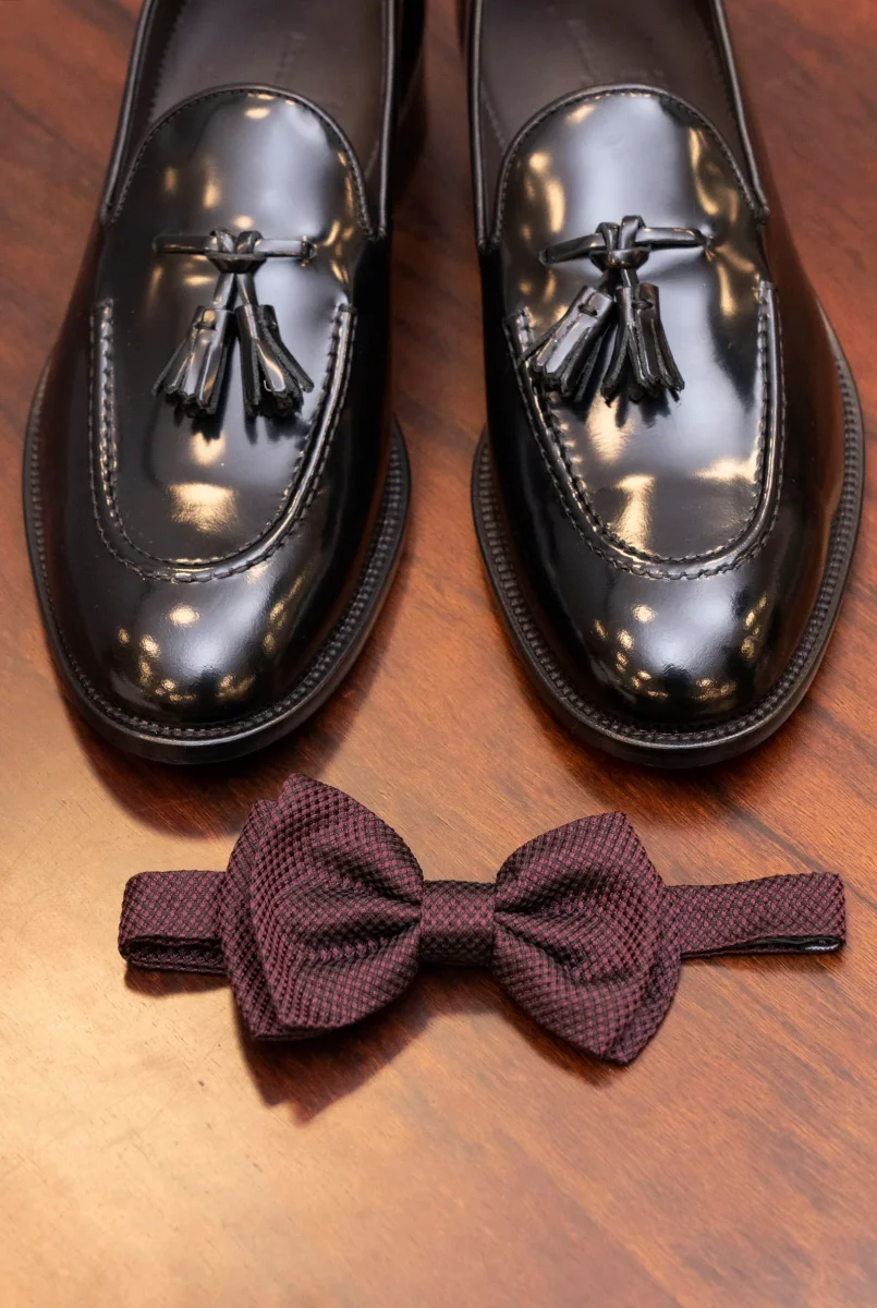 Papillon taglia unica regolabile in seta micro fantasia jaquard bordeauxProdotto interamente in Italia