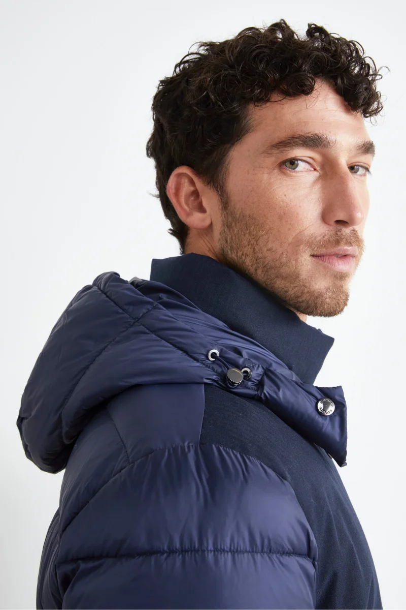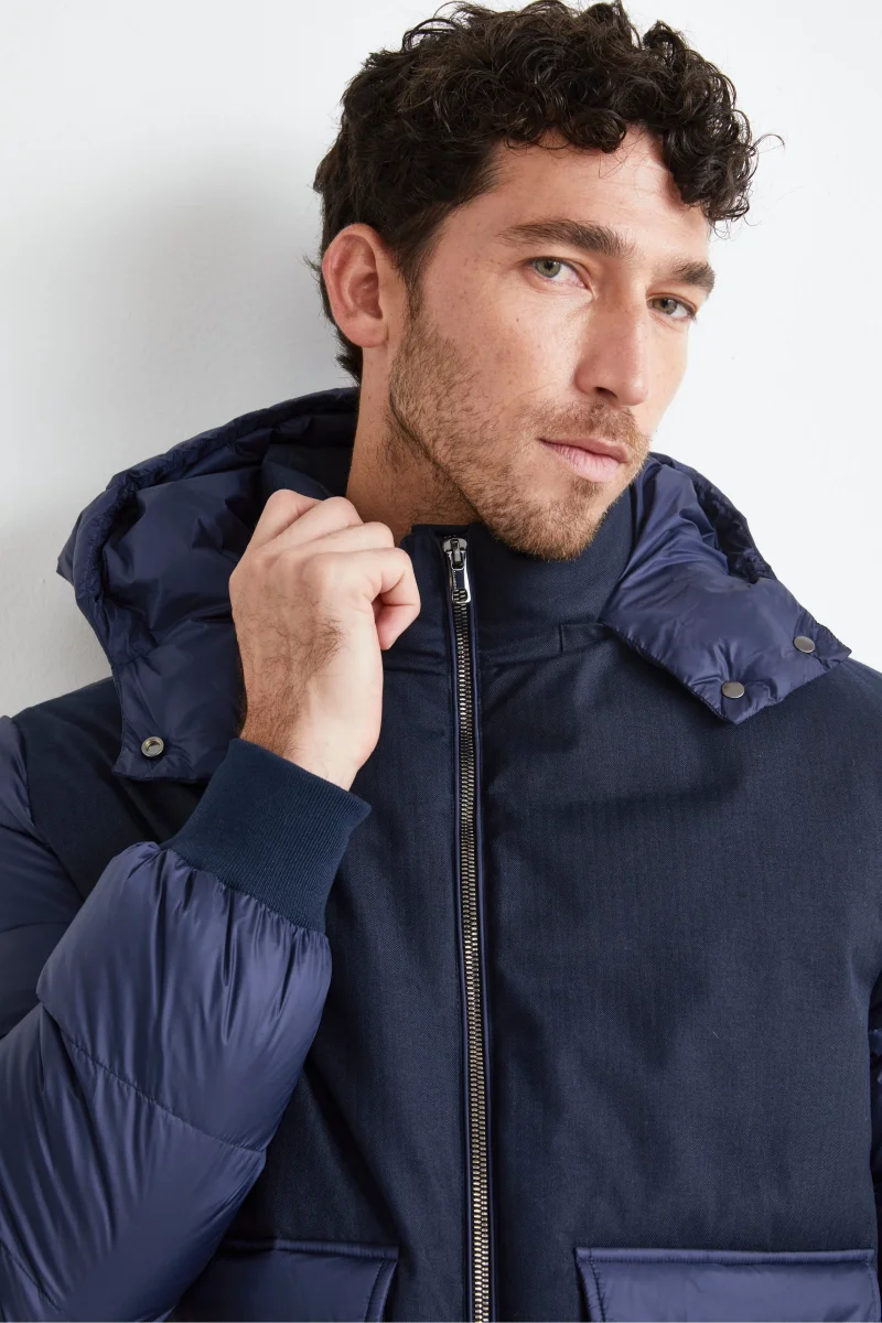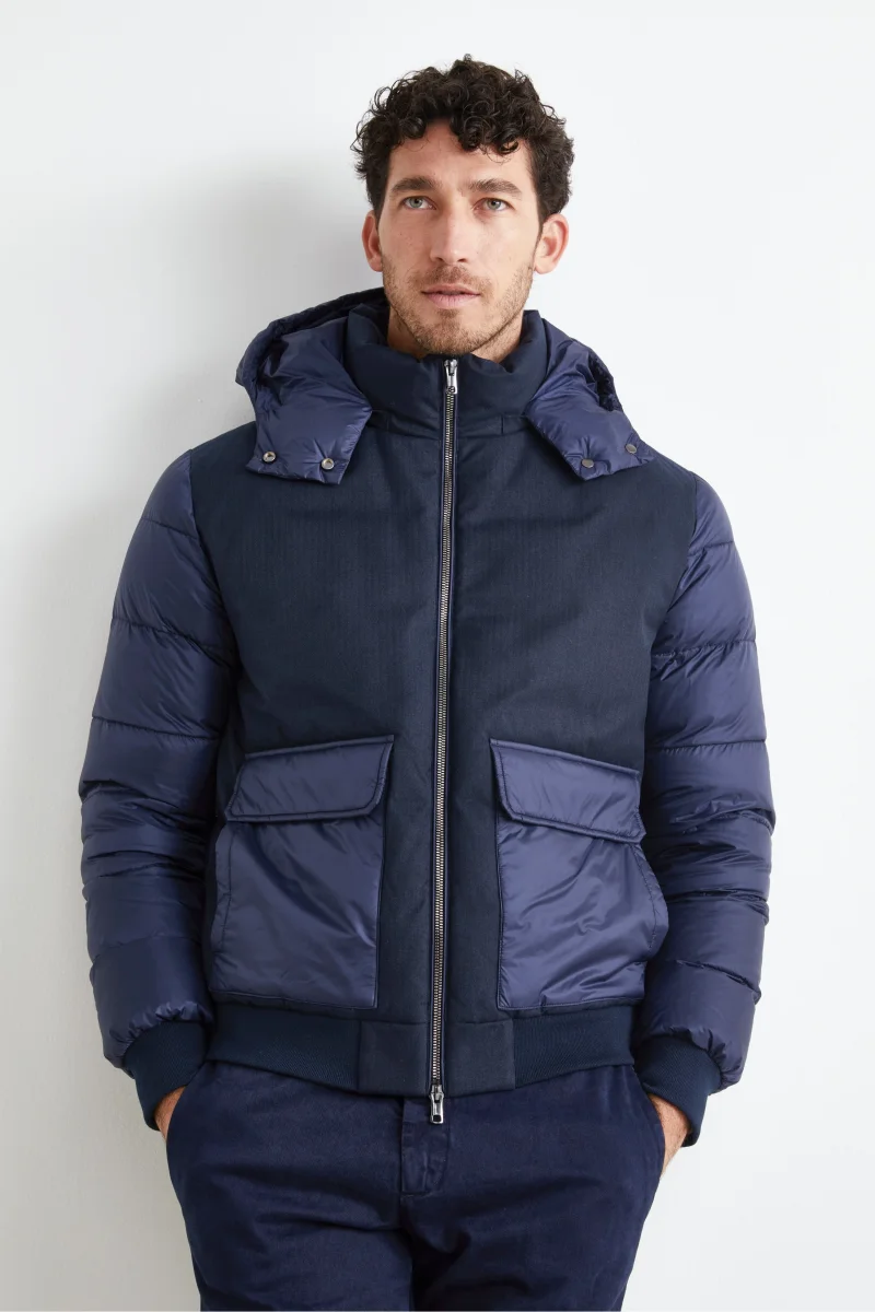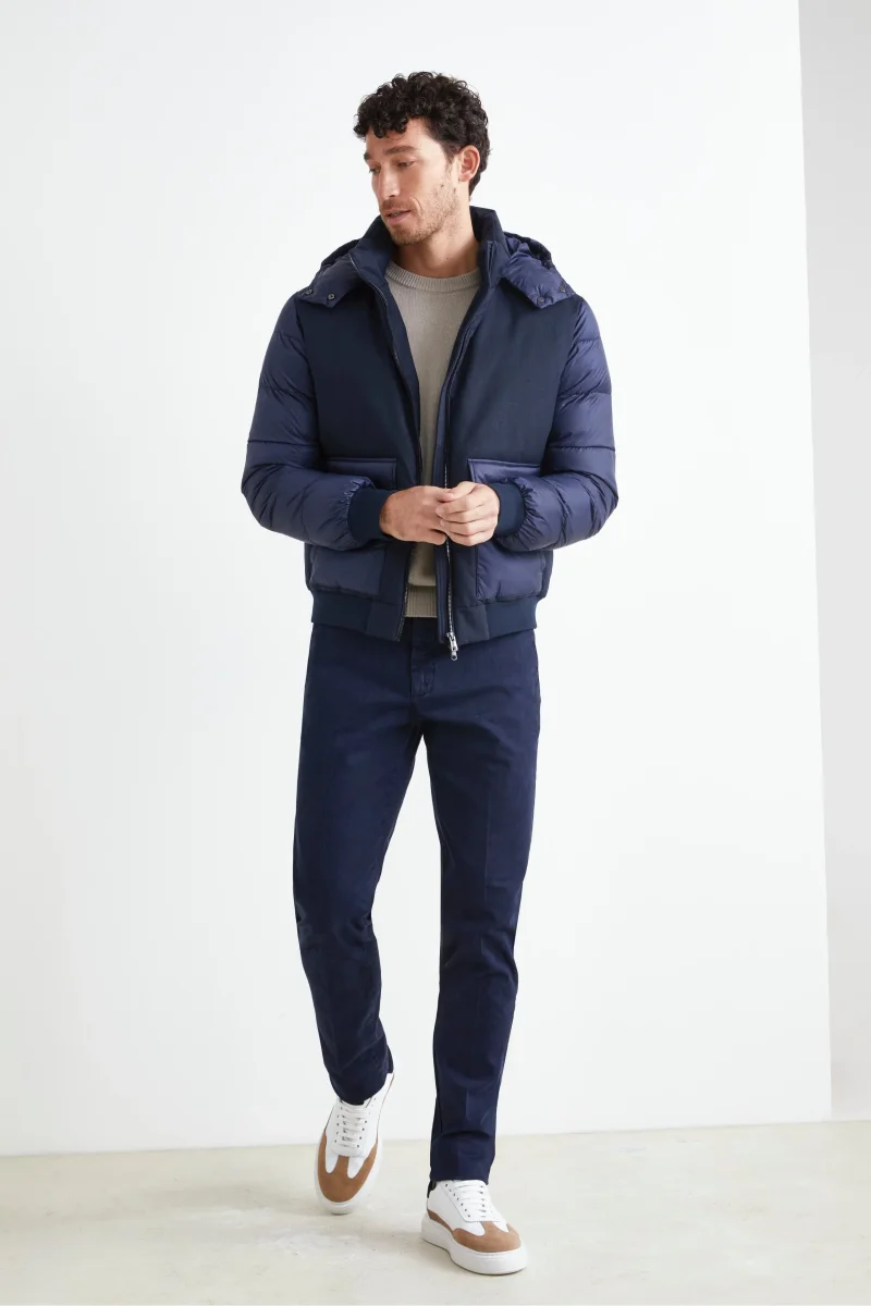 Piumino uomo blu imbottito, ideale per affrontare lโinverno con comfort e calore. Questo capo รจ caratterizzato da una chiusura frontale con zip, tasche applicate anteriori, un rivestimento in tessuto sul davanti e trapuntato sul retro, maniche e cappuccio. La vestibilitร regolare e gli elastici nei polsi e nel bordo inferiore sono elementi distintivi per un design adatto ad ogni outfit, casual o formale. Parte della raffinata collezione IL Lanificio, il piumino blu trapuntato con cappuccio รจ un must-have di ogni guardaroba maschile. Il modello รจ alto 189 cm e indossa la taglia 50.
