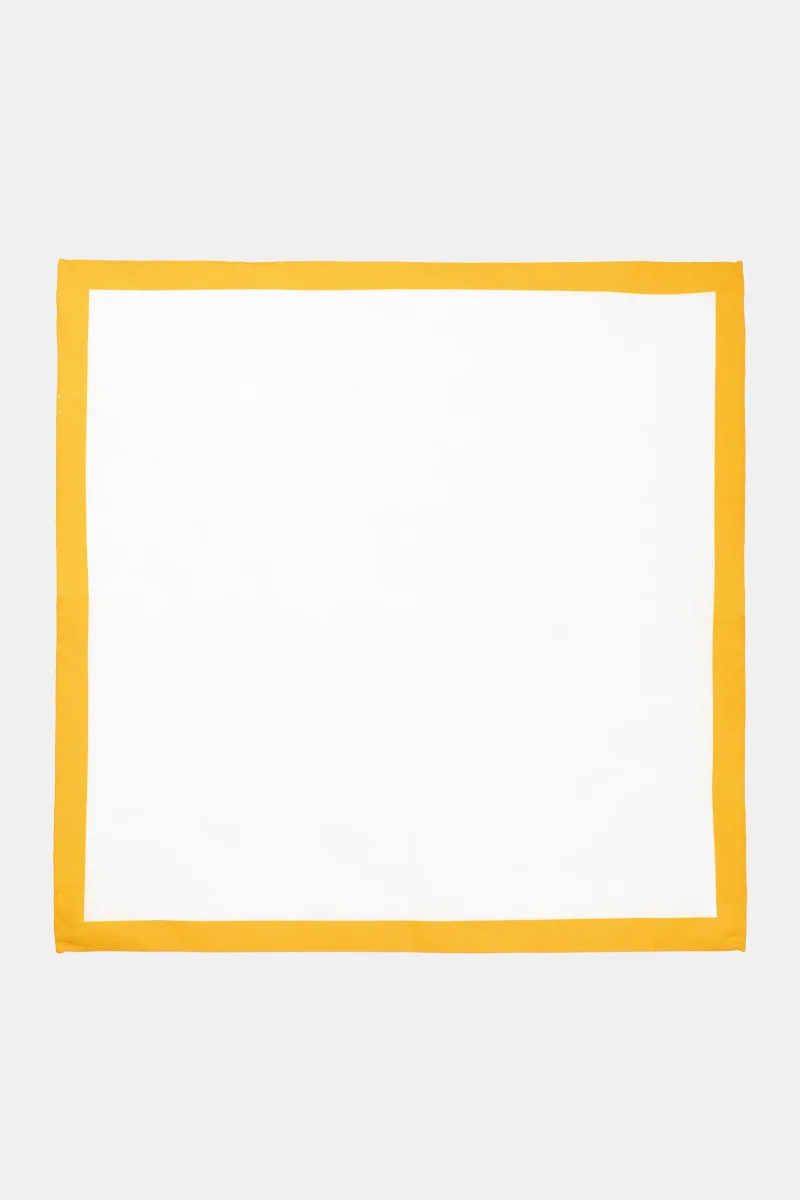 Pochette essenziale in popeline di cotone con bordo stampato nei colori giallo, rosso e verde. Pochette quadrata dimensioni 30×30. Made in Italy