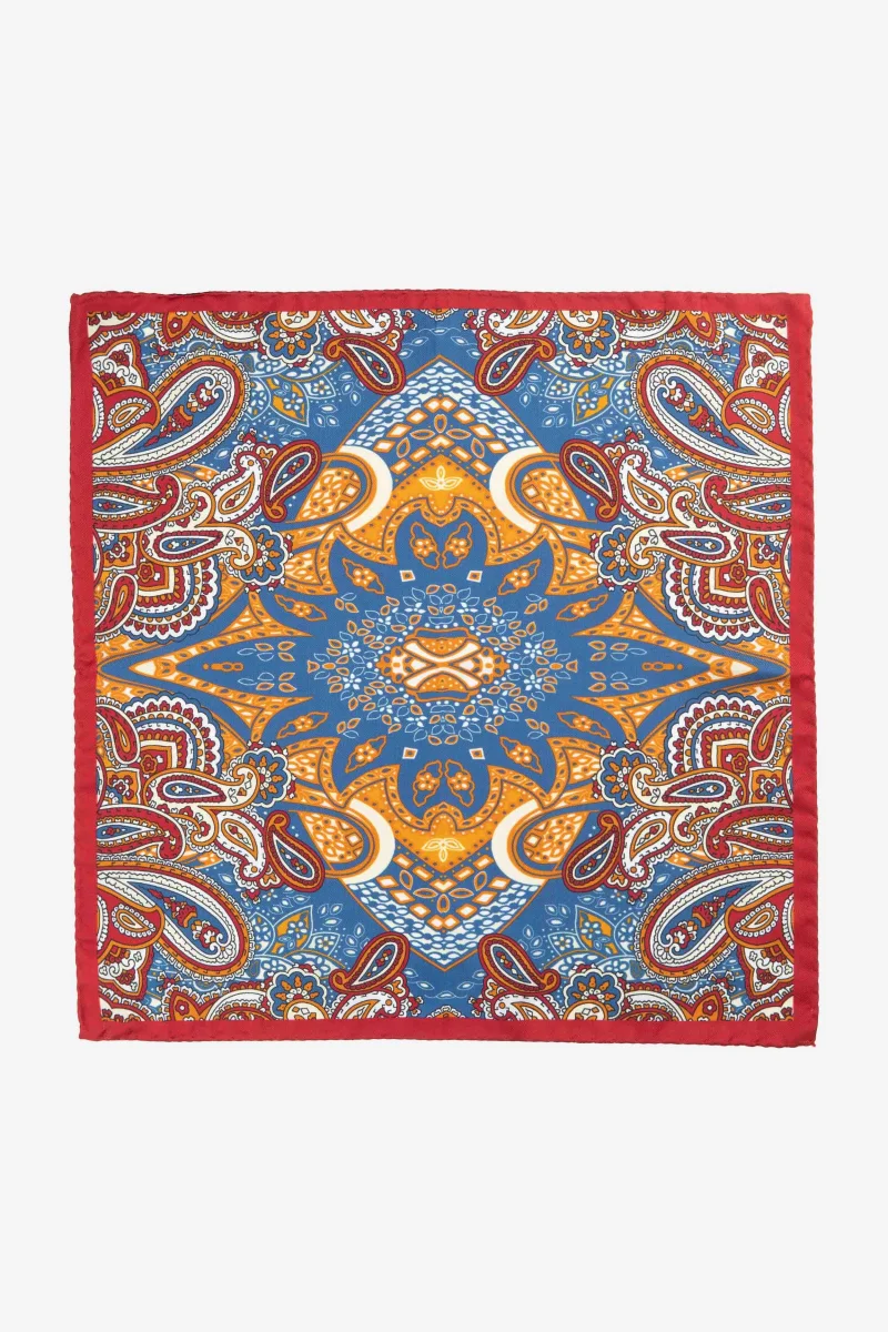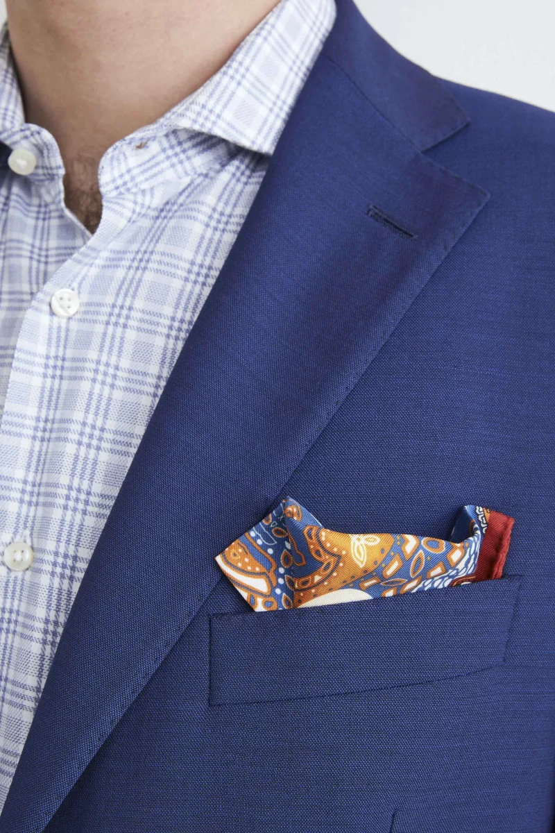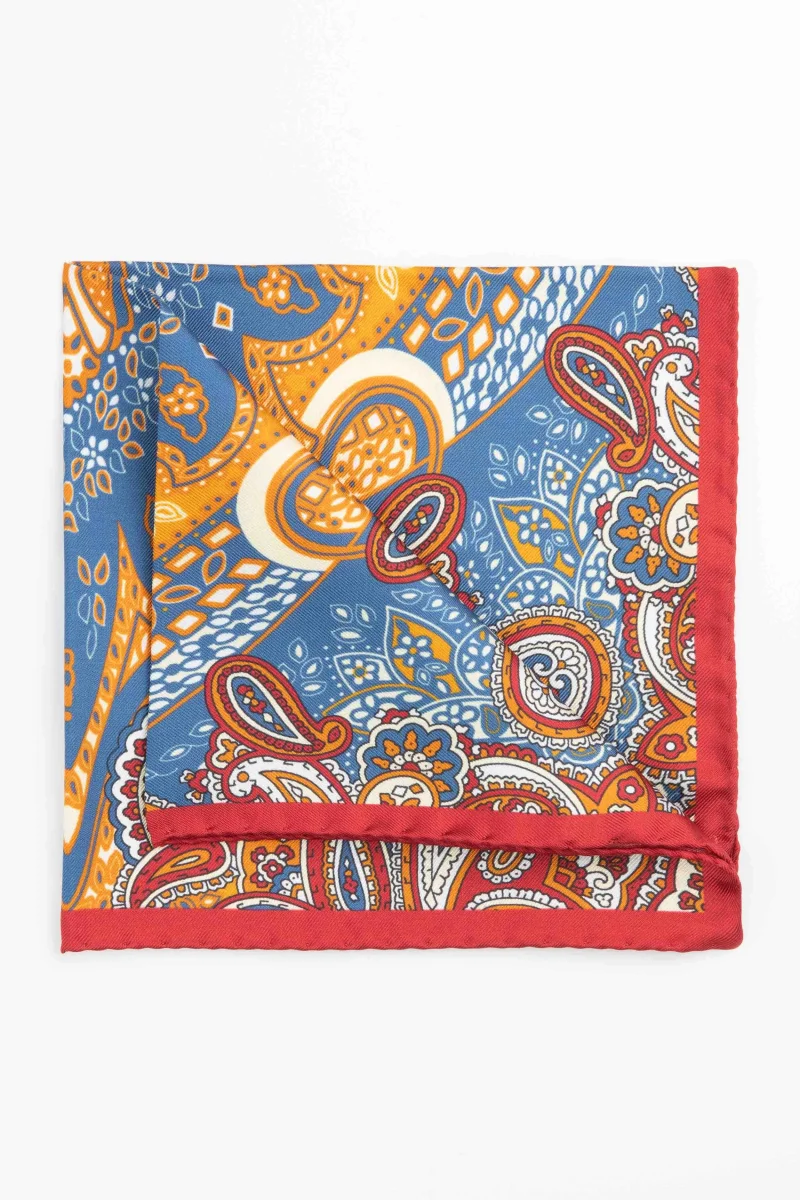 Fazzoletto da taschino fantasia ripasso in seta. Indossalo in coordinato con gilet, cravatta o papillon abbinati per le occasioni speciali e le cerimonie. Pochette quadrata dimensioni 33×33. Made in Italy