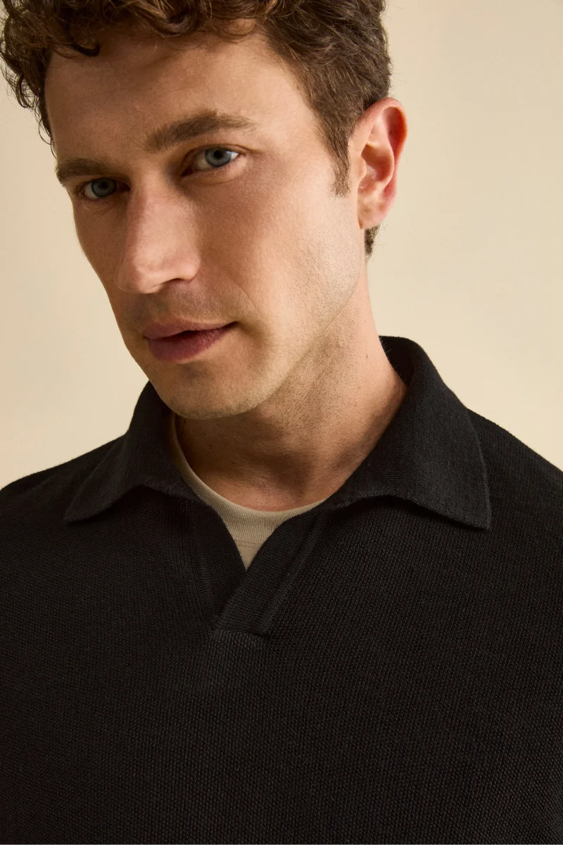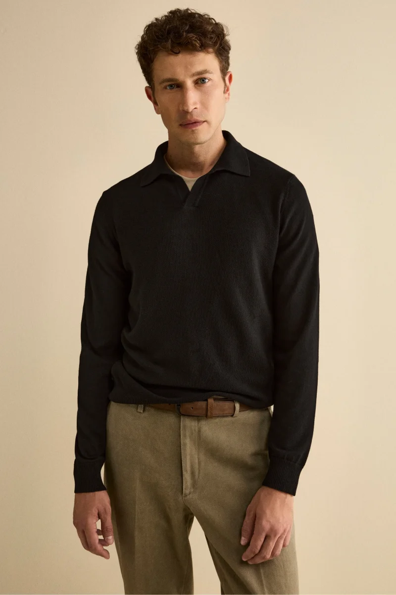 Polo Derby in Lana Merino con Toppe, un capo da uomo versatile e raffinato, realizzato in 100% lana merino Harmony, nota per morbidezza e comfort. ร caratterizzata da colletto classico stile camicia senza bottoni, maniche lunghe, bordi lavorati a coste e una lavorazione frontale in punto piquet che aggiunge texture e pregio. La vestibilitร regolare la rende adatta a diversi contesti, dallโufficio al tempo libero. Parte della collezione uomo Il Lanificio, questa polo in lana merino uomo รจ perfetta con un pantalone chino e mocassini per un look casual elegante, con un jeans straight e sneakers per uno stile piรน disinvolto oppure sotto un blazer destrutturato in misto lana per un outfit sofisticato. Made in Italy. Il modello รจ alto 189 cm e indossa la taglia 50.