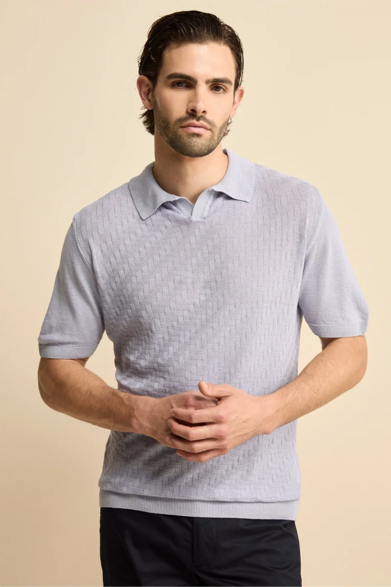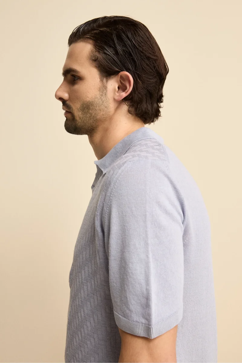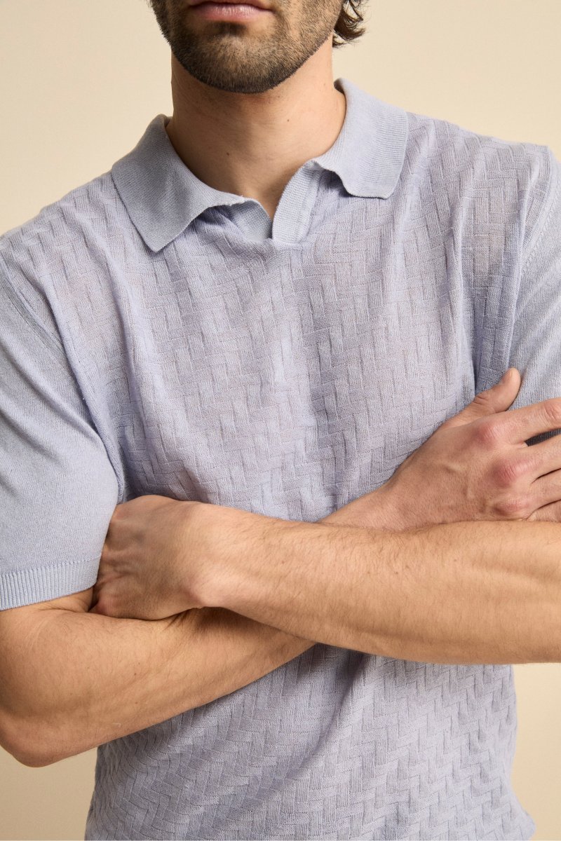 Polo Derby Mezza Manica in Misto Lino – AZZURRO