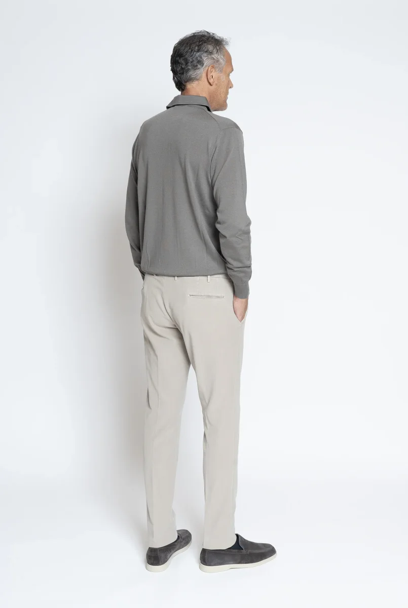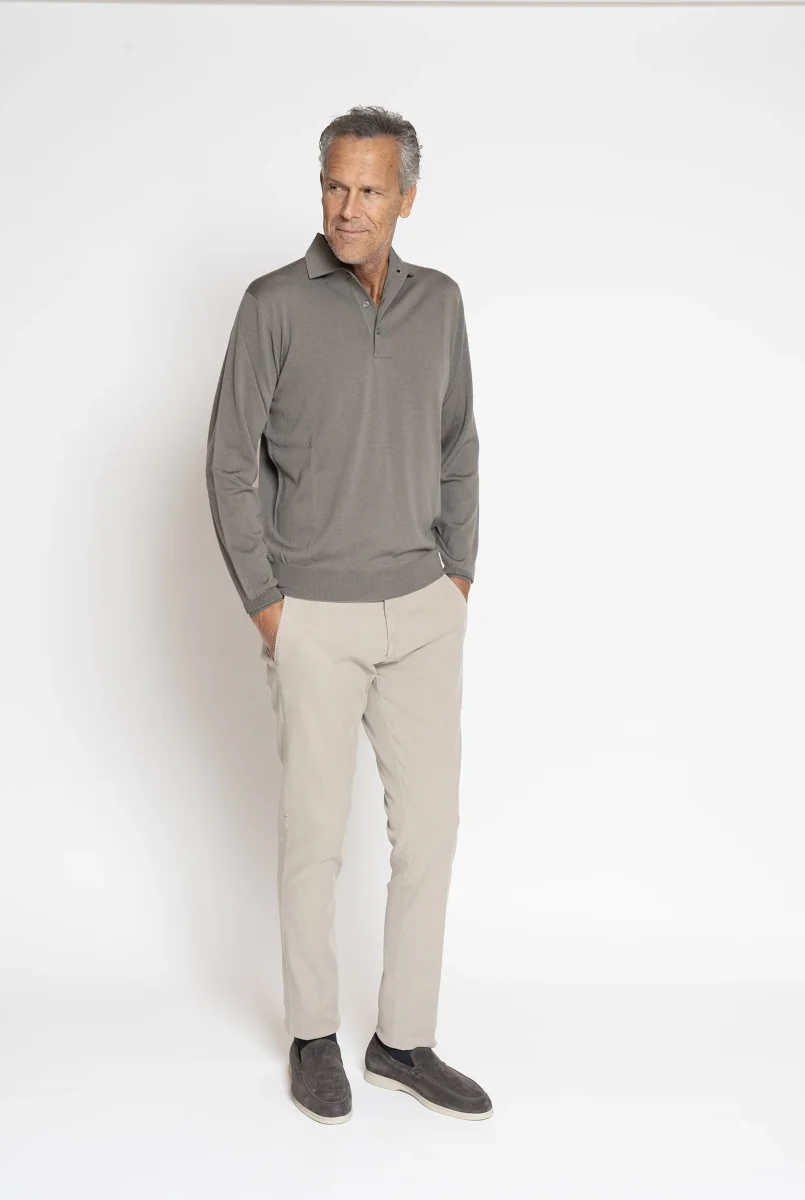 La polo in Royal lana merino super fine in finezza 16 rappresenta il perfetto equilibrio tra eleganza e comfort, un capo di alta qualitร interamente Made in Italy, realizzato con pregiata lana merino per garantire morbidezza, traspirabilitร e una sensazione di leggerezza. Il collo รจ rifinito con una paramantura interna, studiata per offrire il massimo comfort e delicatezza a contatto con la pelle. La manica lunga, insieme all’abbottonatura sul collo, dona a questa polo uno stile raffinato e versatile, adatto sia a contesti formali che casual. Ogni dettaglio รจ stato pensato per assicurare un’esperienza di vestibilitร esclusiva e confortevole, perfettamente in linea con l’eccellenza del Made in Italy.