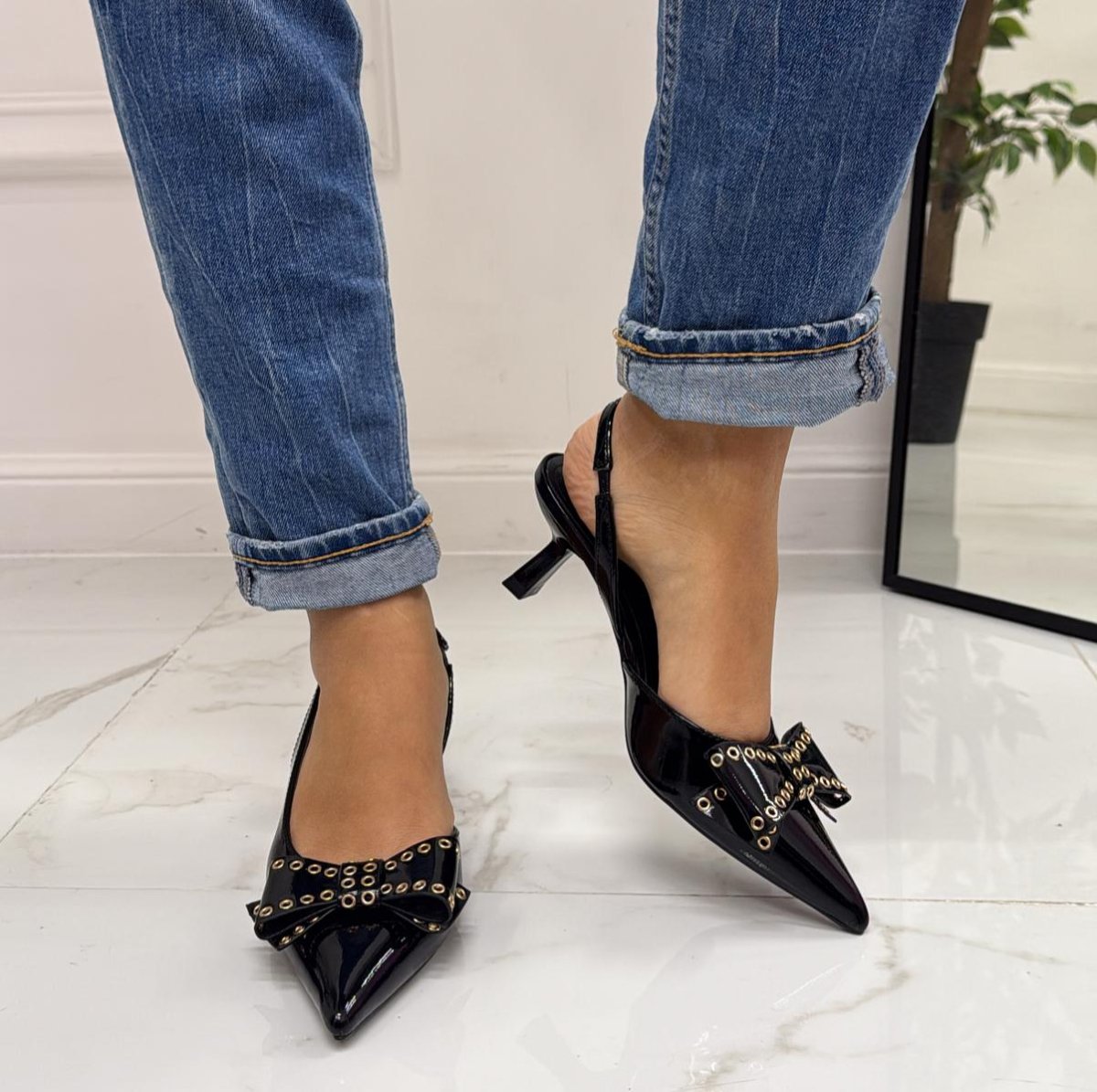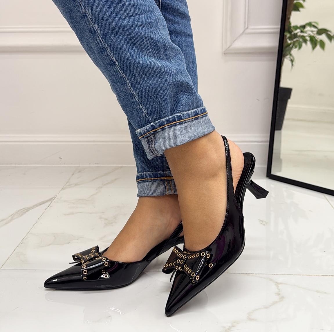 Per affrontare le proprie giornate lavorative, o per sentirti comoda nell’affrontare le serate più impegnative, ti proponiamo questa stupenda ballerina stile casual-elegante. Le sue peculiarità sono: la punta, il tacco alto 7 cm ed il fiocco centrale. Hanno una calzata regolare. Possono essere accostati capi come: jeans, pantaloni classici, gonne, short ed ecc… E’ adatto per affrontare giornate easy o serate impegnative