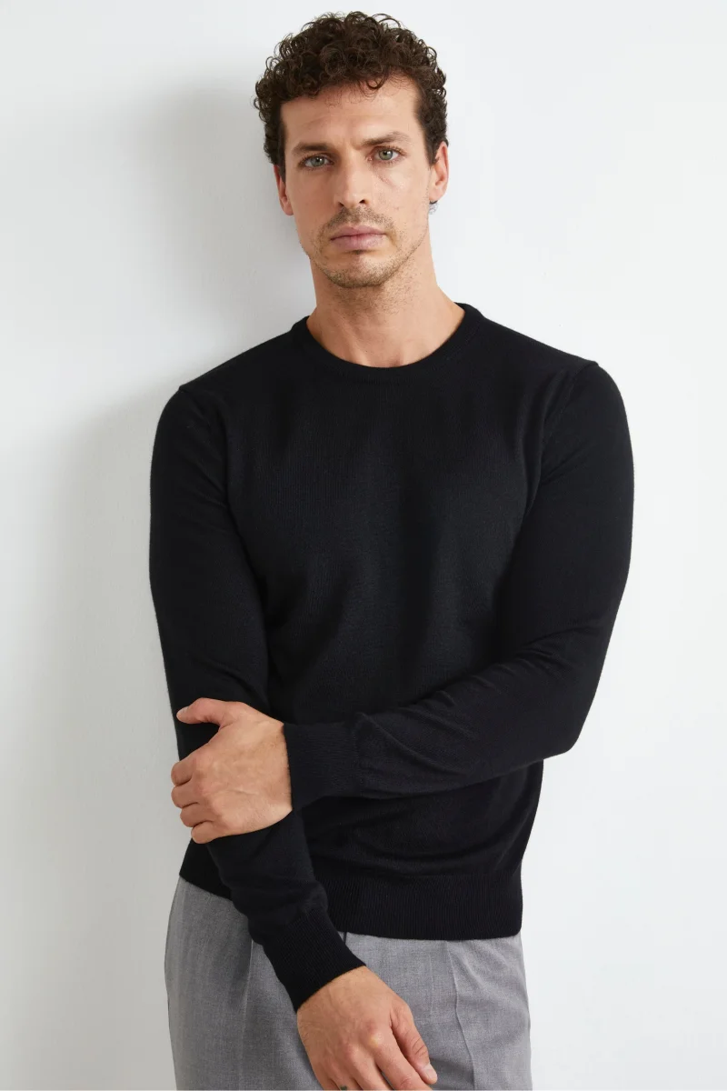 Pullover girocollo uomo, un capo versatile ed elegante, ideale per lโuomo moderno che desidera distinguersi con stile. Realizzato in 100% lana merino Harmony del prestigioso Lanificio di Tollegno, questo cardigan offre una lucentezza naturale e una resistenza eccezionale. Perfetto per chi cerca calore e comfort, รจ caratterizzato una manica lunga e rifiniture ai polsi e sul fondo, progettate per mantenere lโintegritร del tessuto anche dopo numerosi lavaggi. La vestibilitร slim e la varietร di colori a disposizione, lo rendono ideale per un look moderno e raffinato, adatto ad ogni occasione. Interamente Made in Italy, รจ pensato per lโuomo che desidera qualitร e durabilitร . Il modello รจ alto 189 cm e indossa la taglia 50.