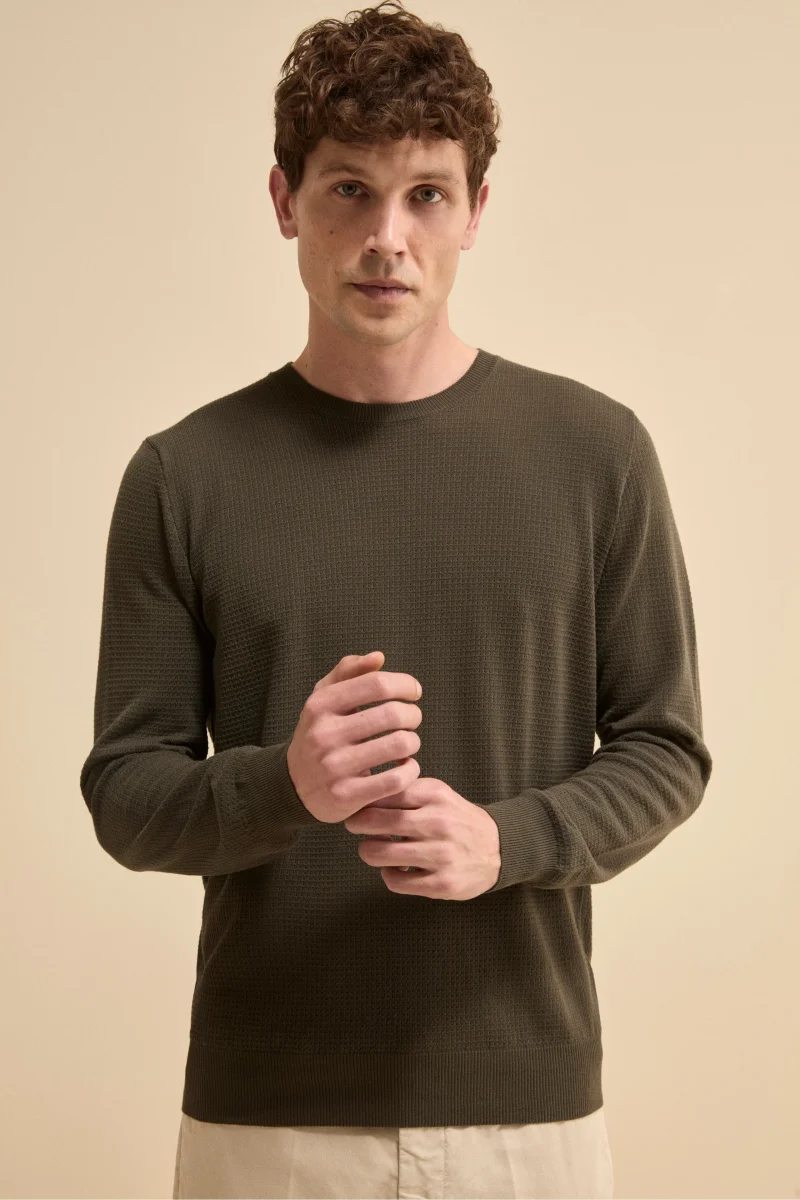 Pullover Girocollo Lavorato in Cotone – VERDE