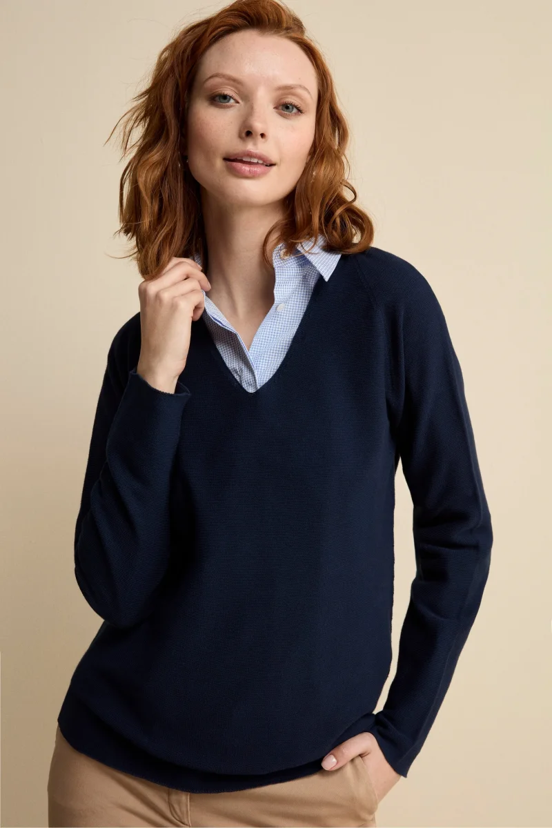 Realizzato in 100% cotone lavorato a punto links, questo pullover da donna si distingue per la texture sofisticata e la linea over dal comfort avvolgente. Lo scollo a V e la spalla scesa aggiungono un tocco rilassato ma curato, perfetto per uno stile essenziale e contemporaneo. Parte della collezione IL Lanificio, questa maglia da donna con scollo a V, รจ interamente Made in Italy. Da indossare con pantaloni a vita alta per un look quotidiano dal gusto minimal, oppure sopra una camicia per un layering raffinato. La modella รจ alta 177 cm e indossa la taglia 42.