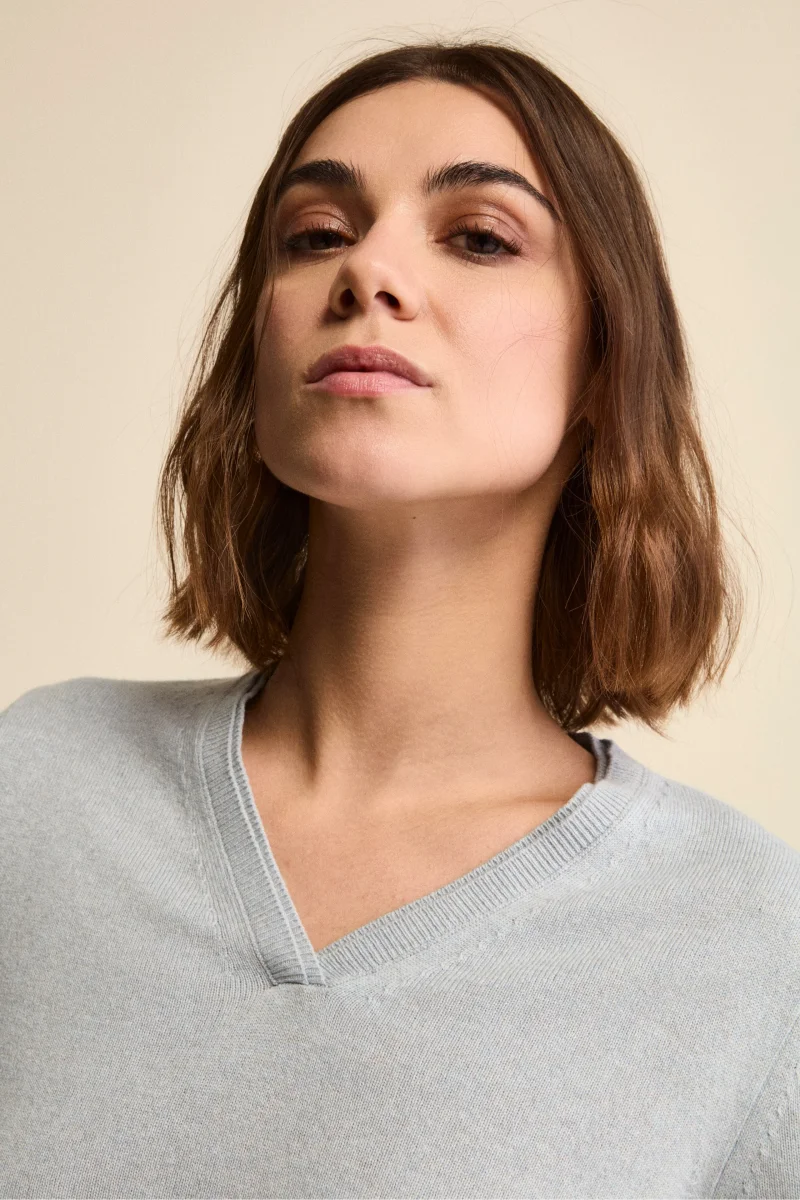 Pullover scollo a V in seta e cashmere – AZZURRO
