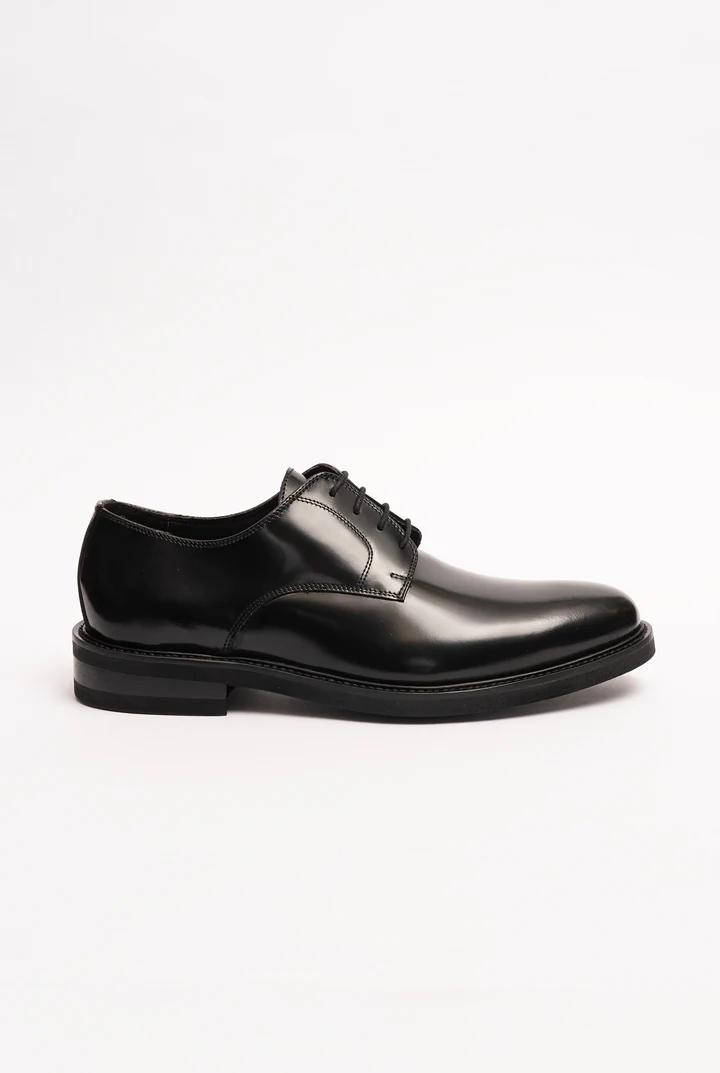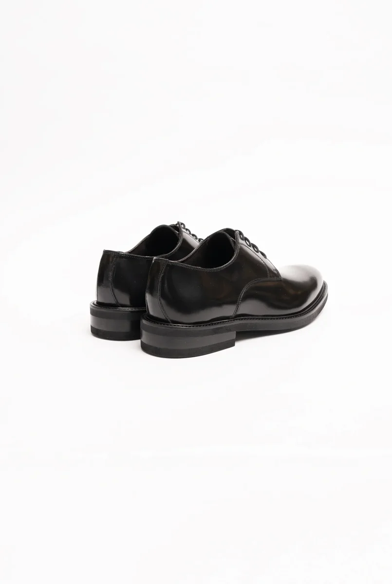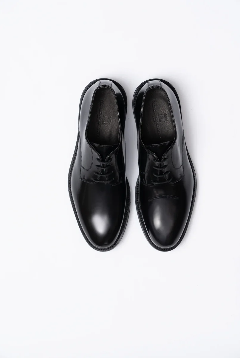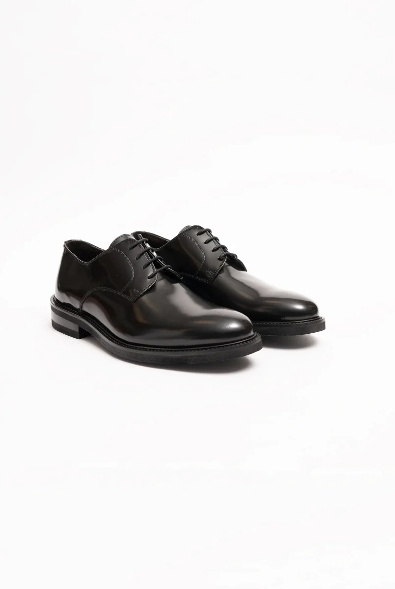 Scarpa derby in vitello spazzolato lucido nero