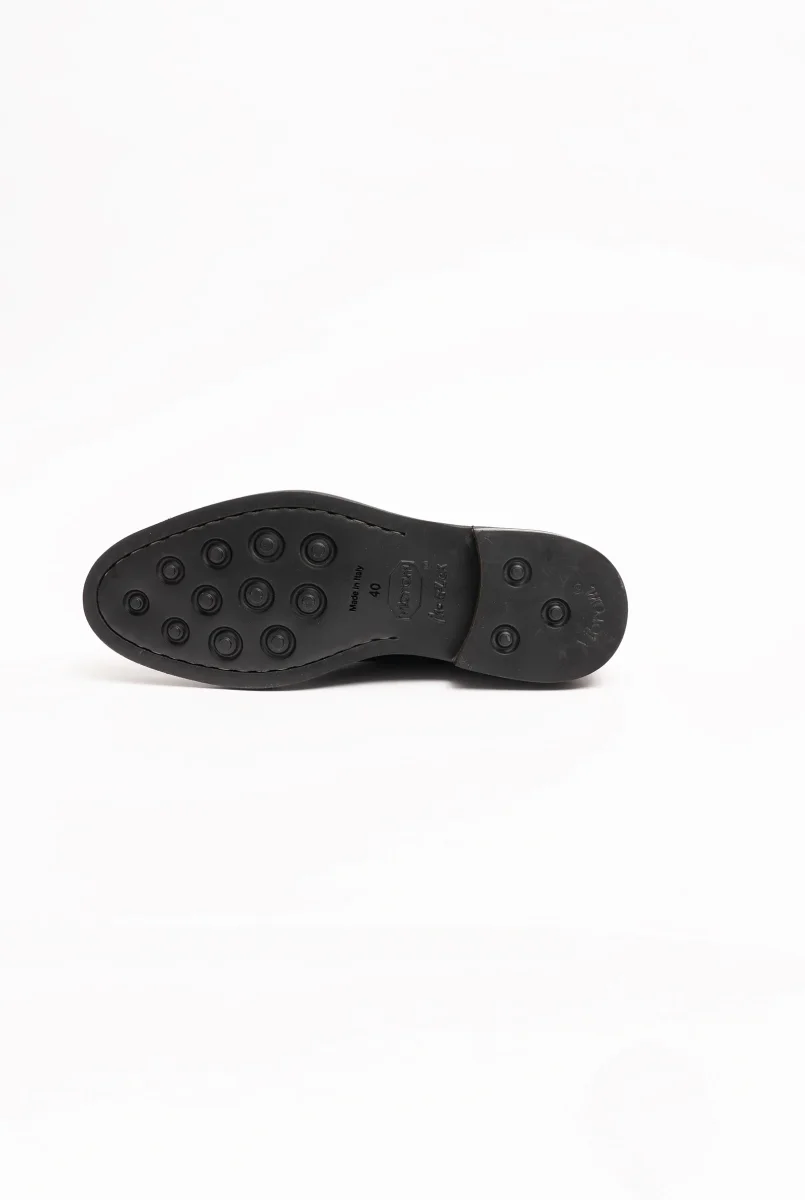 Mocassino con nappine testa di moro fondo gomma